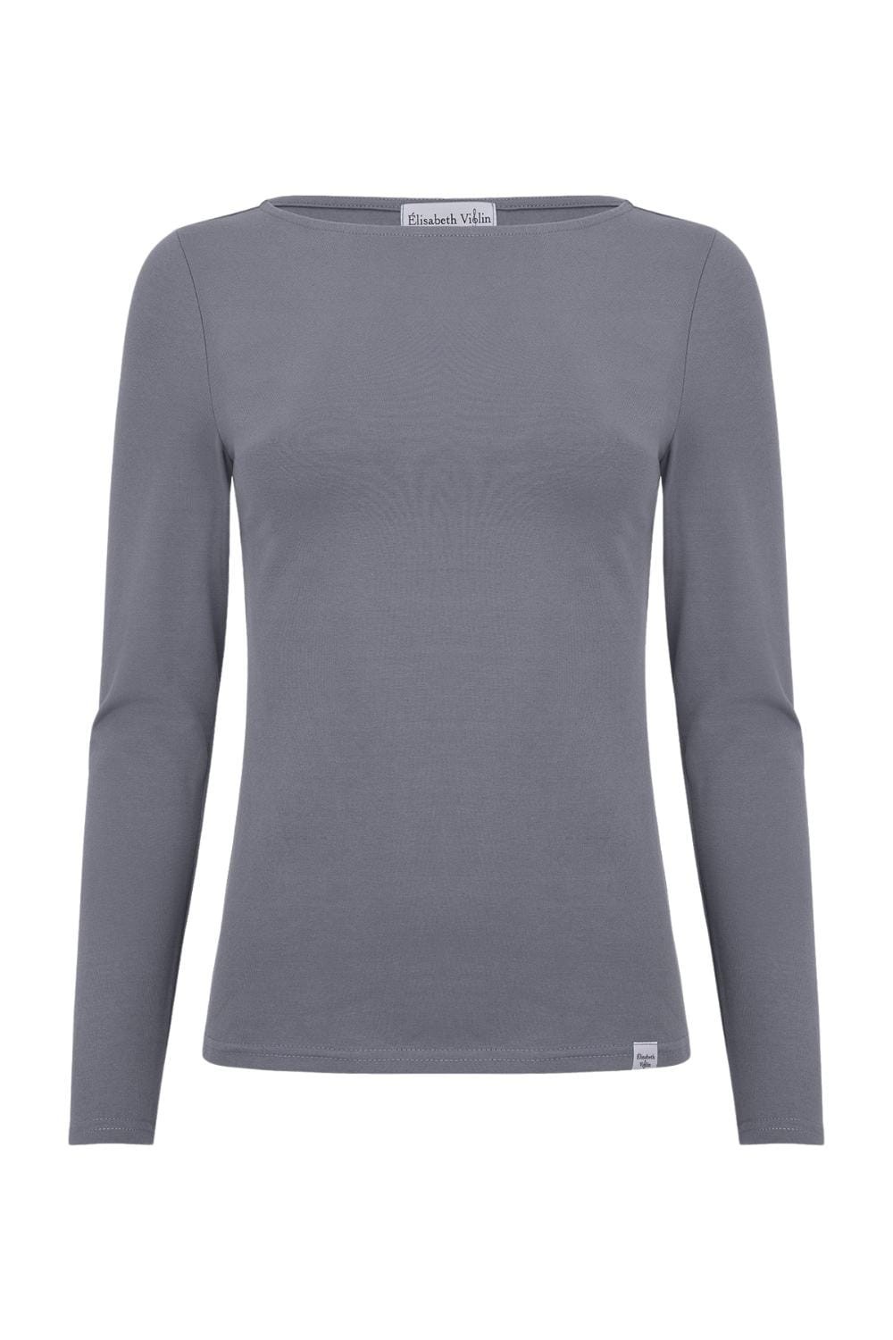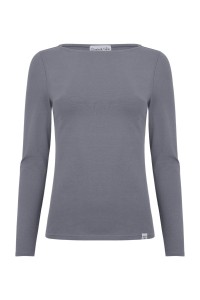 LÉA – Quiet Shade - BAMBUS – taliowana bluzka z dekoltem w łódkę i klasycznymi długimi rękawami