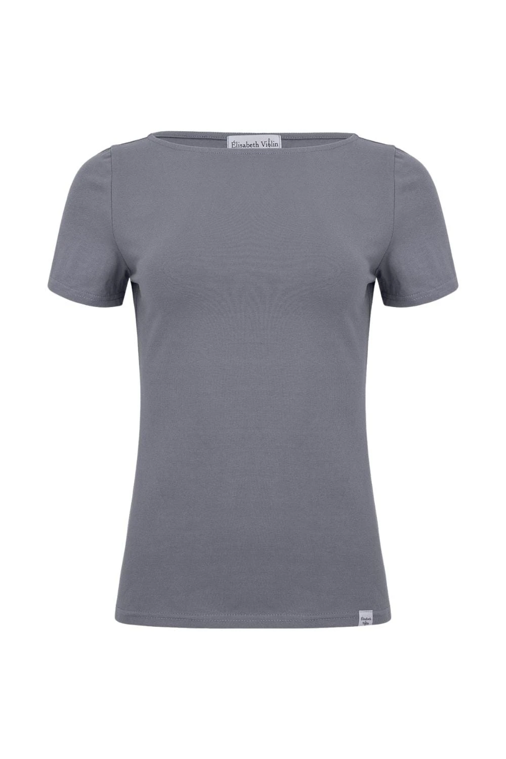 LÉA – Quiet Shade - BAMBUS – taliowana bluzka z dekoltem w łódkę i klasycznymi krótkimi rękawami