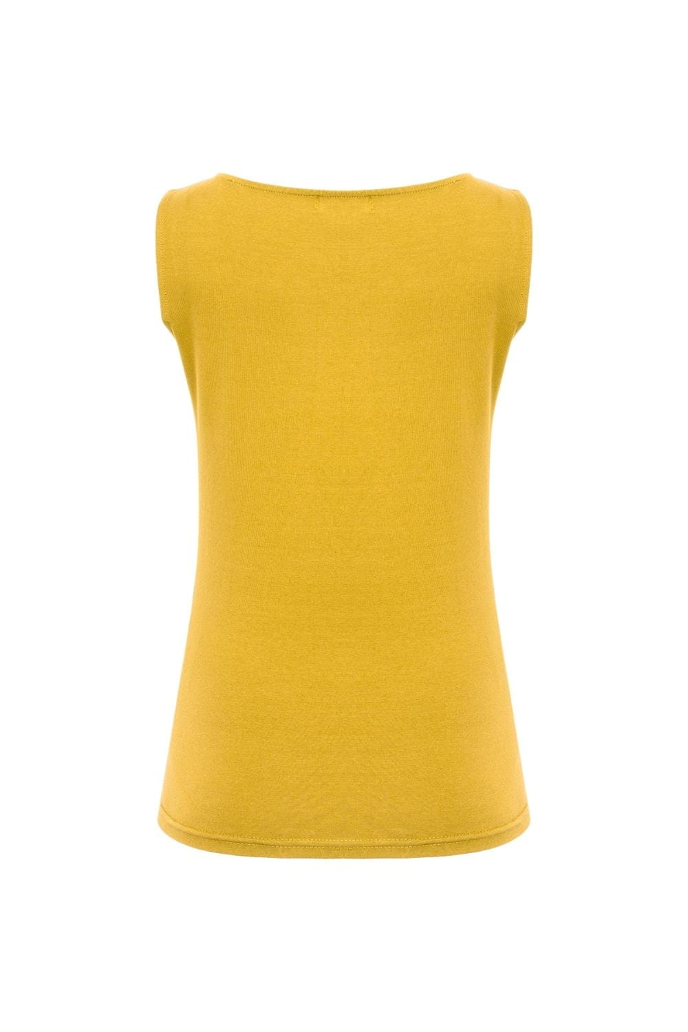 Kobieca, delikatnie taliowana bluzka z wiskozy z dekoltem w łódkę. Jest bez rękawków - idealna pod marynarki i swetry, lub solo w cieplejsze dni.