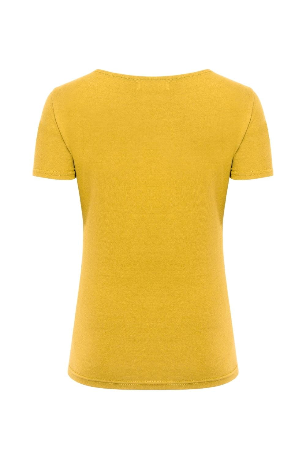 Kobieca, delikatnie taliowana bluzka z wiskozy, z dekoltem w łódkę i klasycznymi krótkimi rękawami, które idealnie sprawdzą się na każdą okazję.