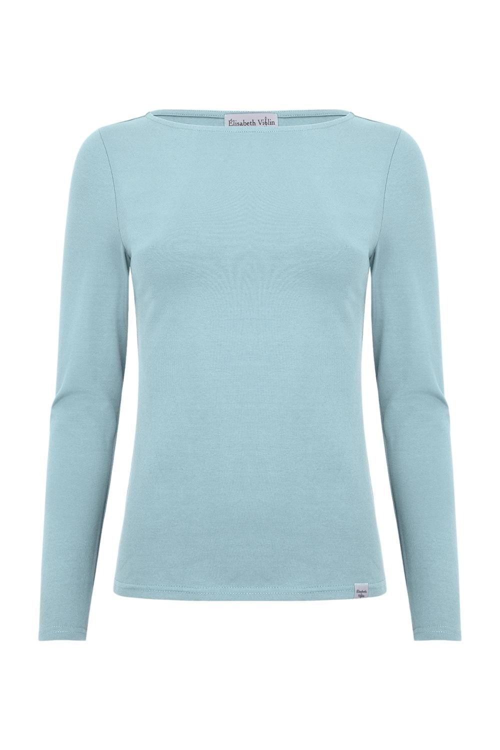 LÉA – Sea Angel - BAWEŁNA GŁADKA – taliowana bluzka z dekoltem w łódkę i klasycznymi długimi rękawami