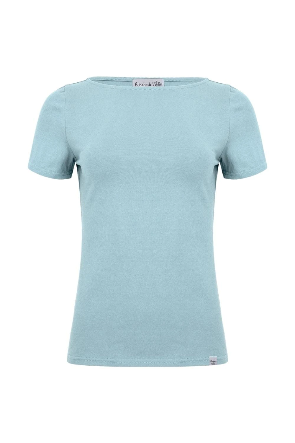 LÉA – Sea Angel - BAWEŁNA GŁADKA – taliowana bluzka z dekoltem w łódkę i klasycznymi krótkimi rękawami