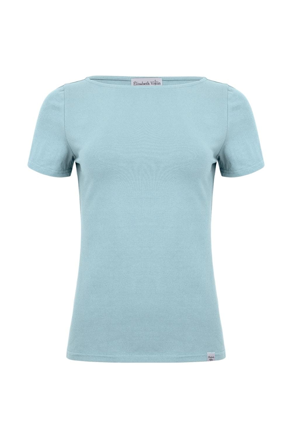 LÉA – Sea Angel - BAWEŁNA GŁADKA – taliowana bluzka z dekoltem w łódkę i klasycznymi krótkimi rękawami
