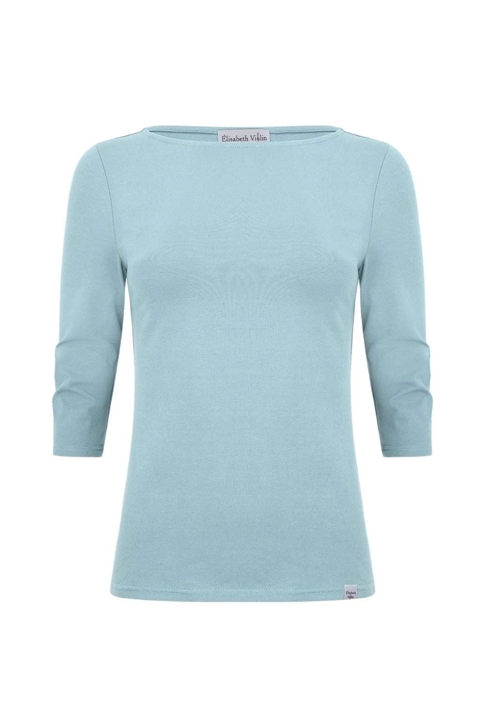 LÉA – Sea Angel - BAWEŁNA GŁADKA – taliowana bluzka z dekoltem w łódkę i klasycznymi rękawami 3/4