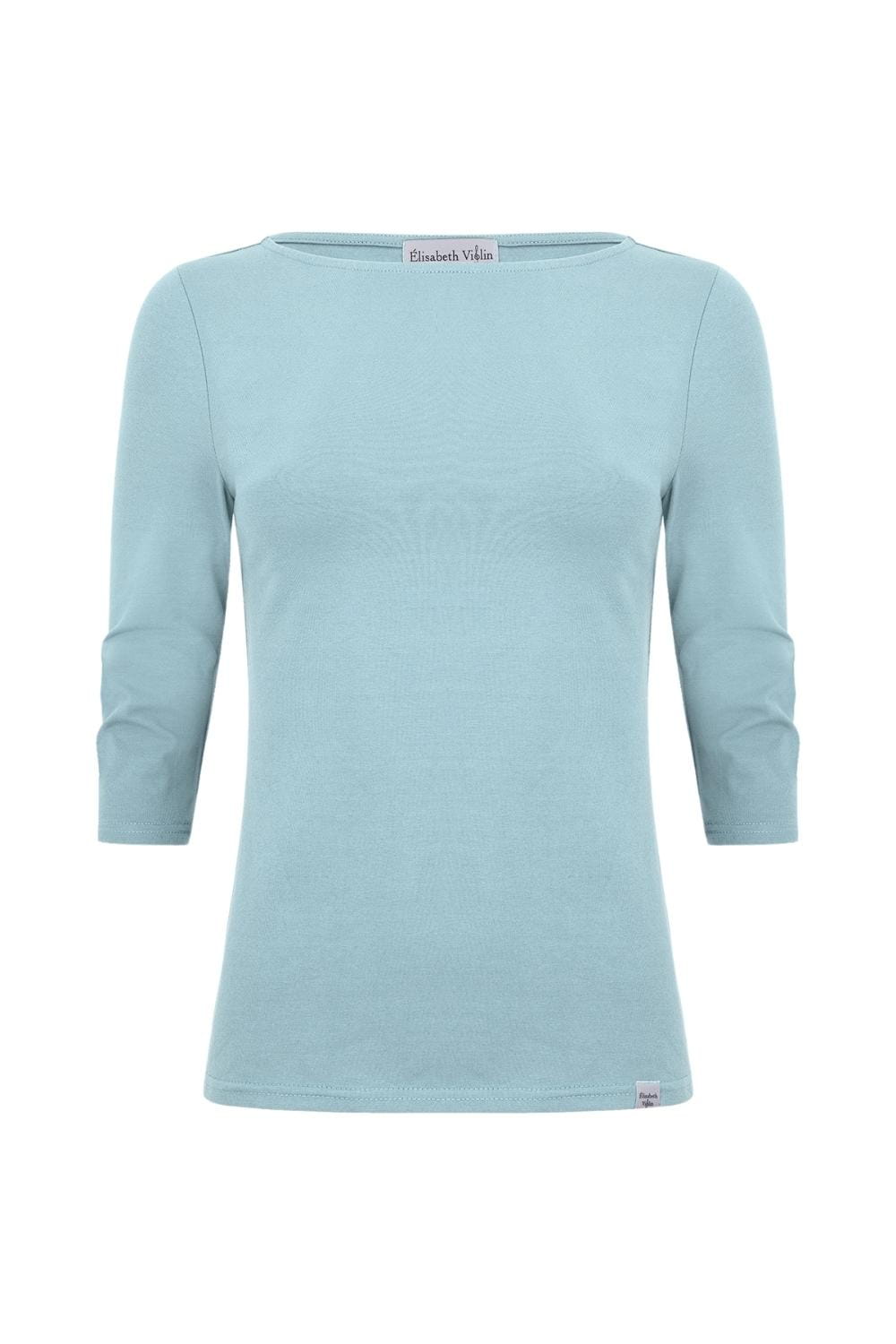 LÉA – Sea Angel - BAWEŁNA GŁADKA – taliowana bluzka z dekoltem w łódkę i klasycznymi rękawami 3/4