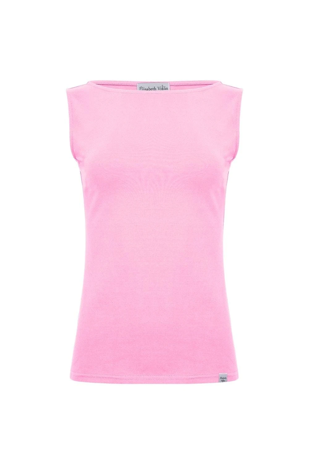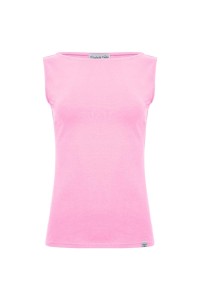 LÉA – Sea Pink - WISKOZA – taliowana bluzka z dekoltem w łódkę bez rękawków