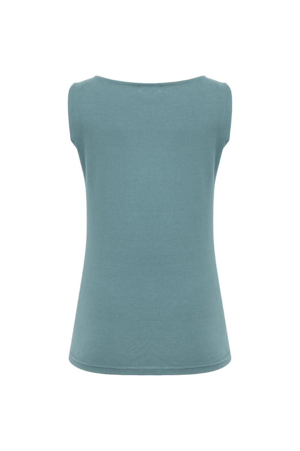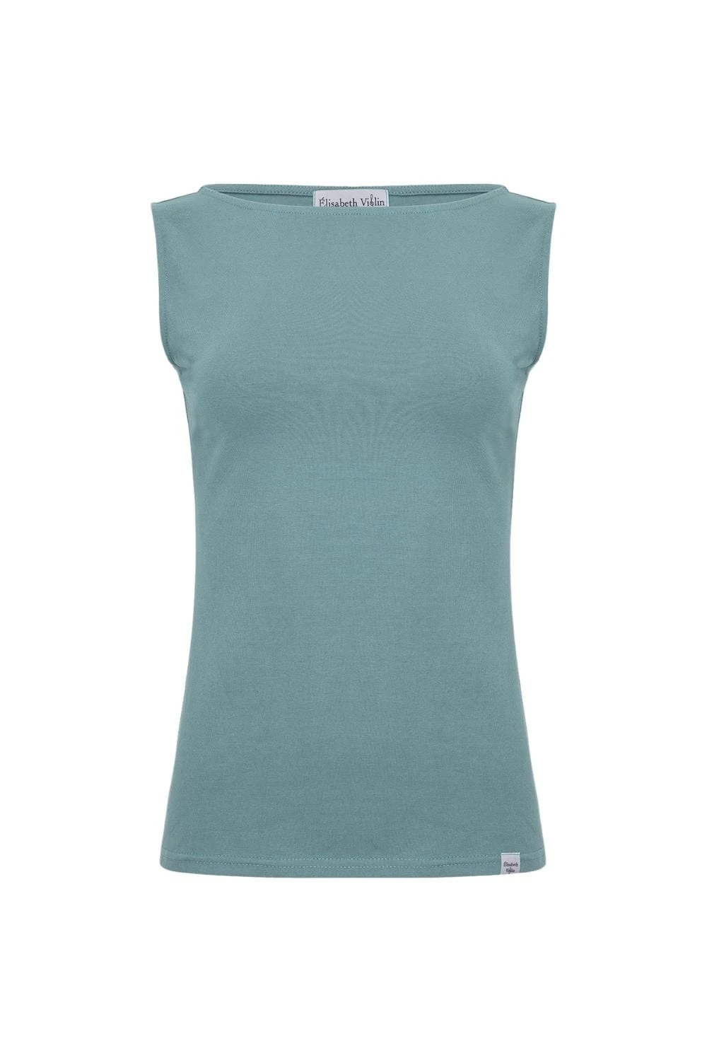 LÉA – Smoke Blue - BAWEŁNA GŁADKA – taliowana bluzka z dekoltem w łódkę bez rękawków
