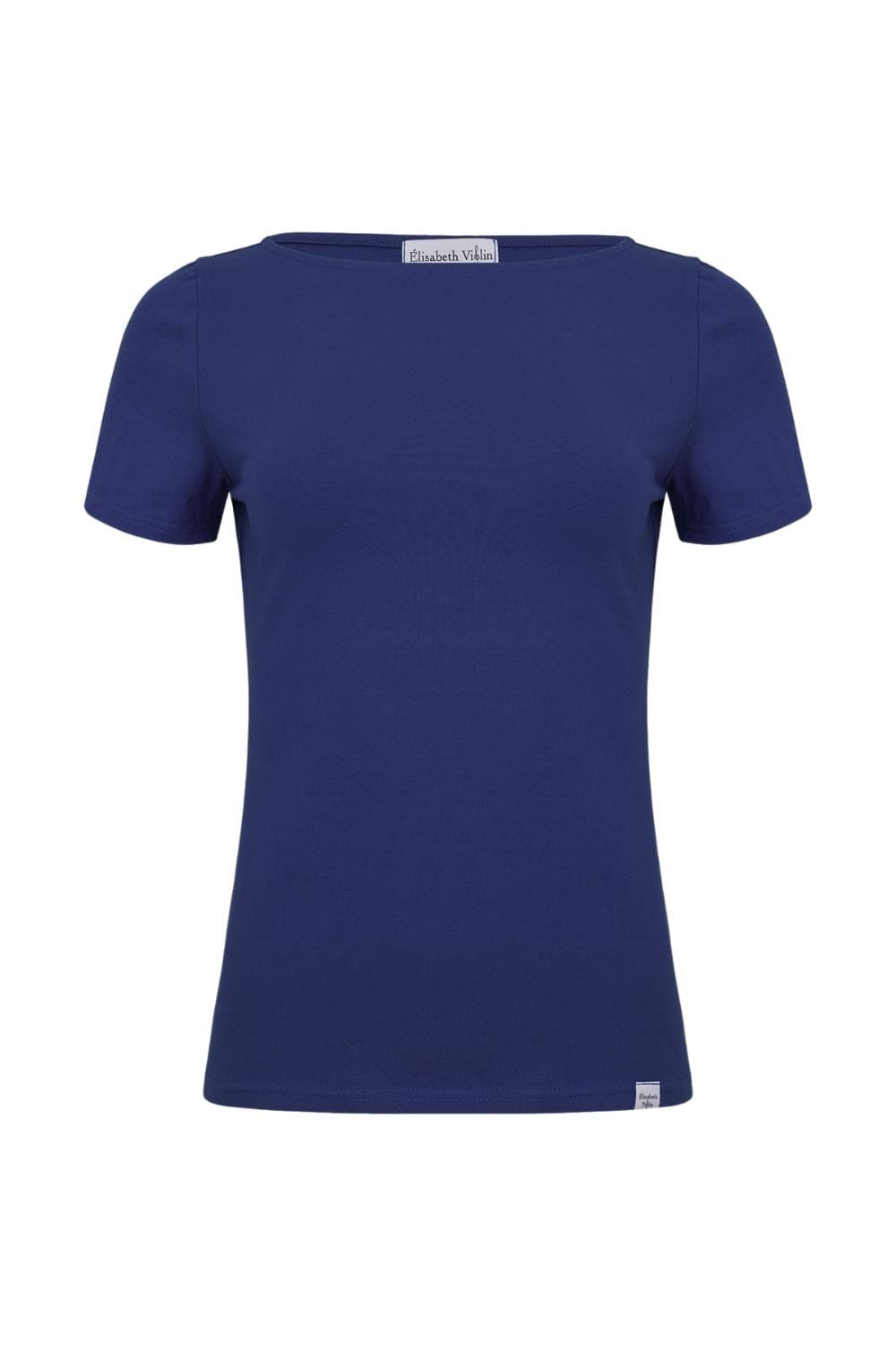 LÉA – Sodalite Blue - BAWEŁNA GŁADKA – taliowana bluzka z dekoltem w łódkę i klasycznymi krótkimi rękawami