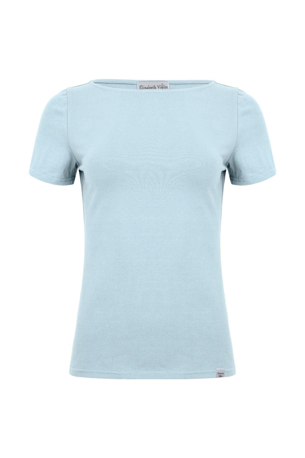 LÉA – Sterling Blue - WISKOZA – taliowana bluzka z dekoltem w łódkę i klasycznymi krótkimi rękawami