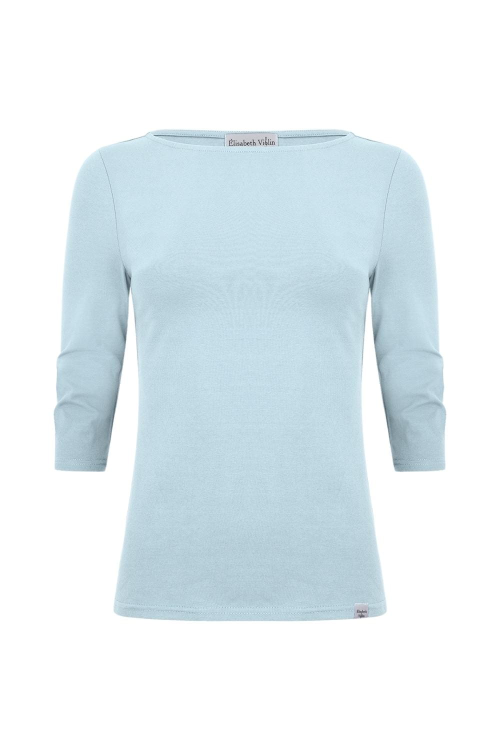 LÉA – Sterling Blue - WISKOZA – taliowana bluzka z dekoltem w łódkę i klasycznymi rękawami 3/4