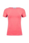 LÉA – Sunkist Coral - BAWEŁNA GŁADKA – taliowana bluzka z dekoltem w łódkę i klasycznymi krótkimi rękawami