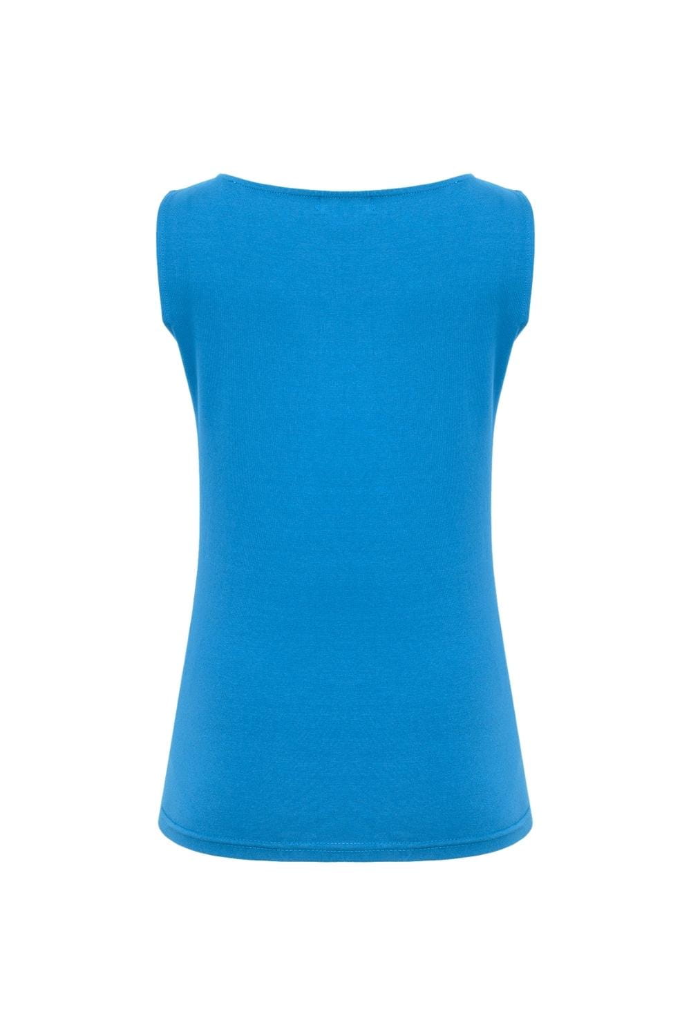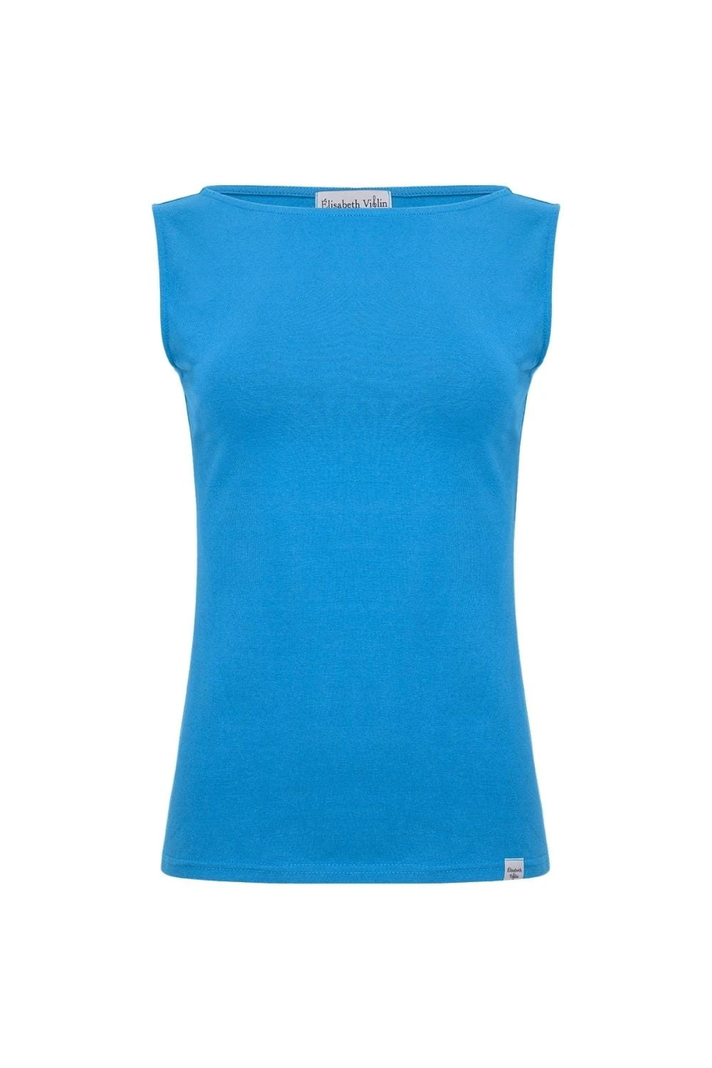 LÉA – Swedish Blue - BAMBUS – taliowana bluzka z dekoltem w łódkę bez rękawków
