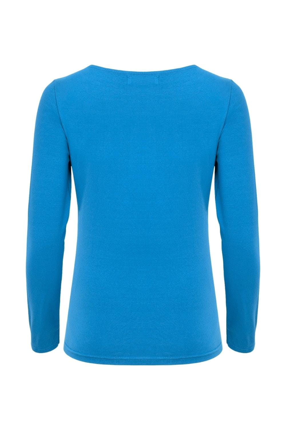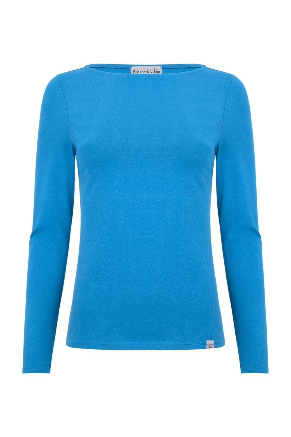 LÉA – Swedish Blue - BAMBUS – taliowana bluzka z dekoltem w łódkę i klasycznymi długimi rękawami
