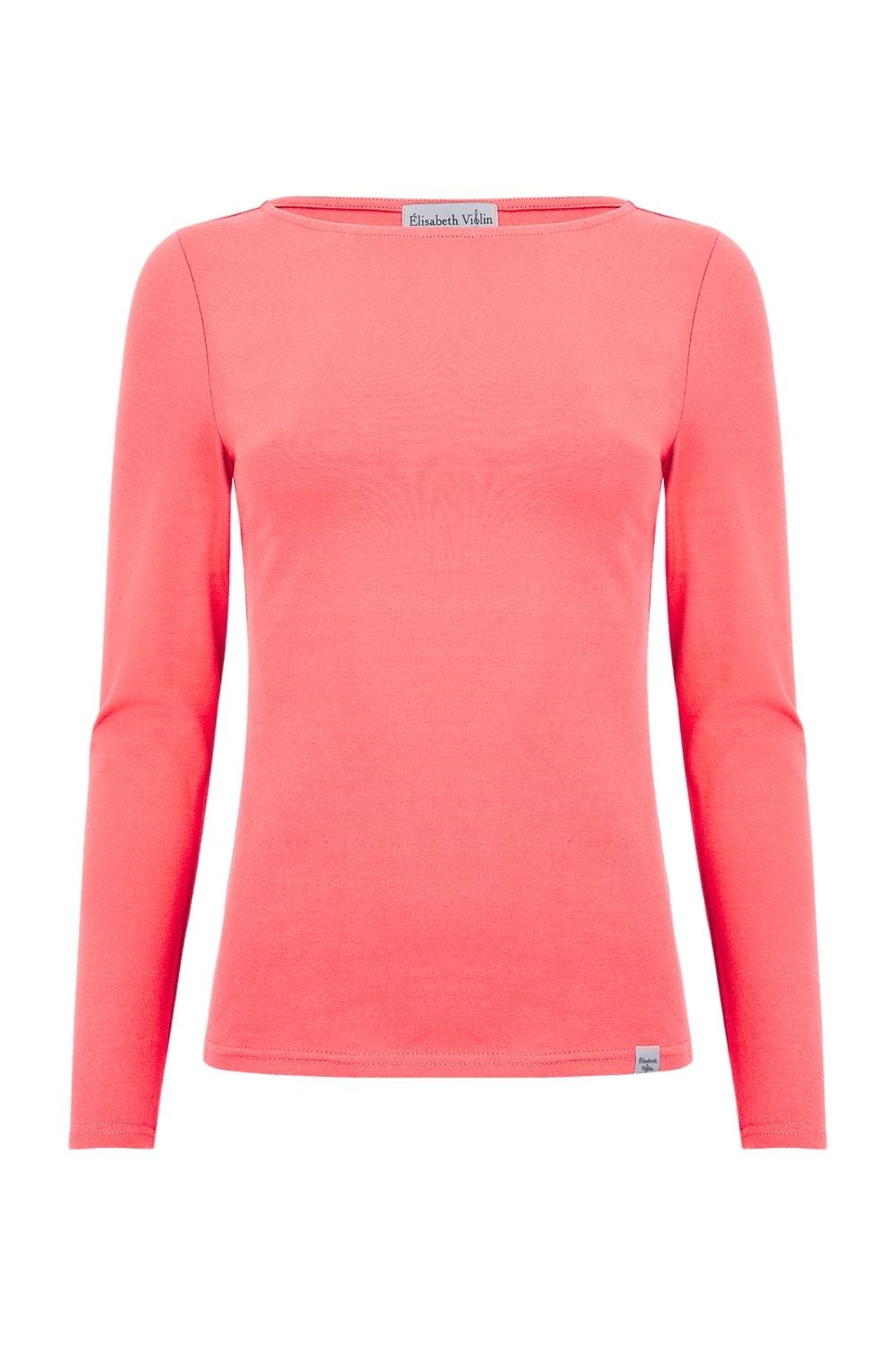 LÉA – Tea Rose - WISKOZA – taliowana bluzka z dekoltem w łódkę i klasycznymi długimi rękawami