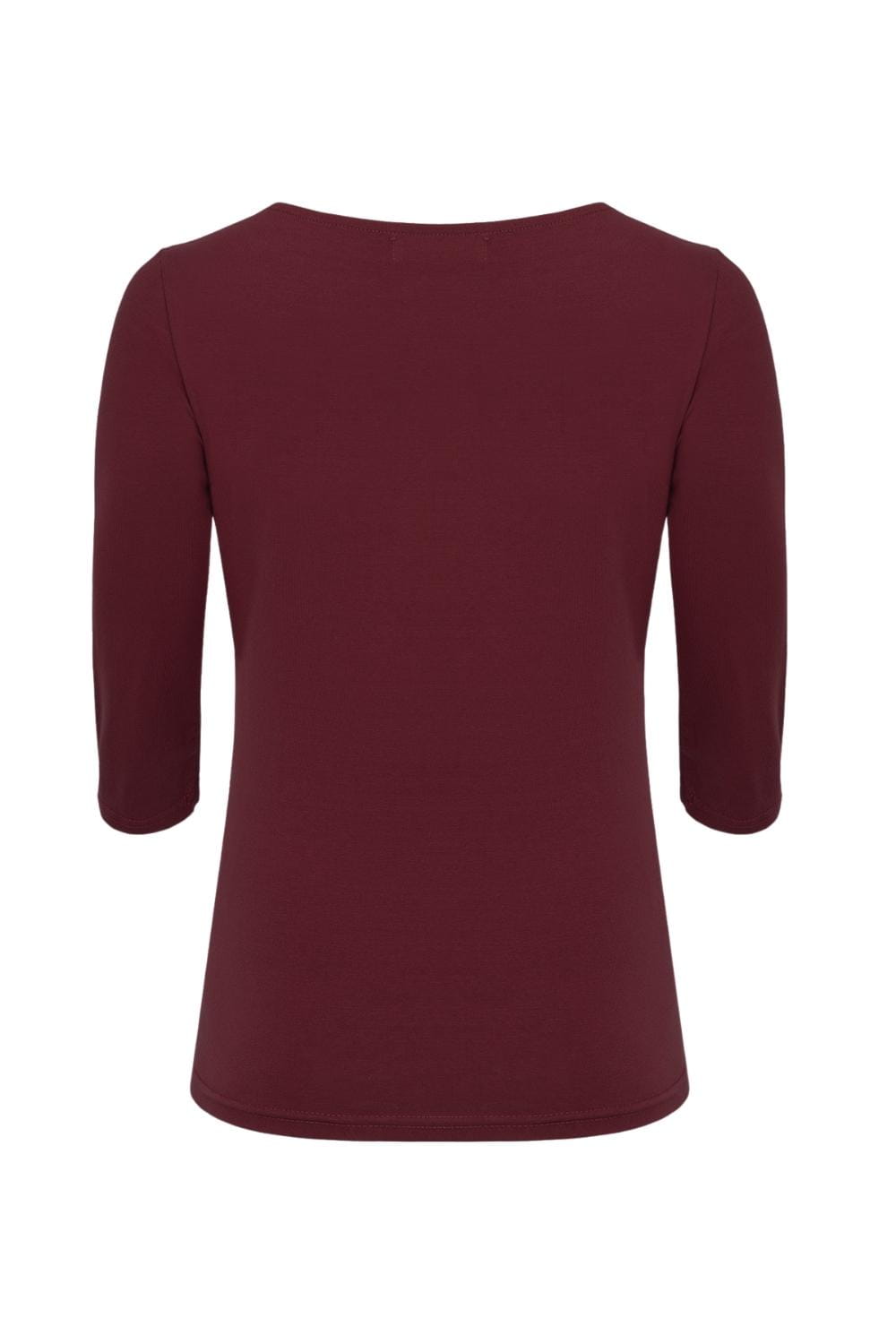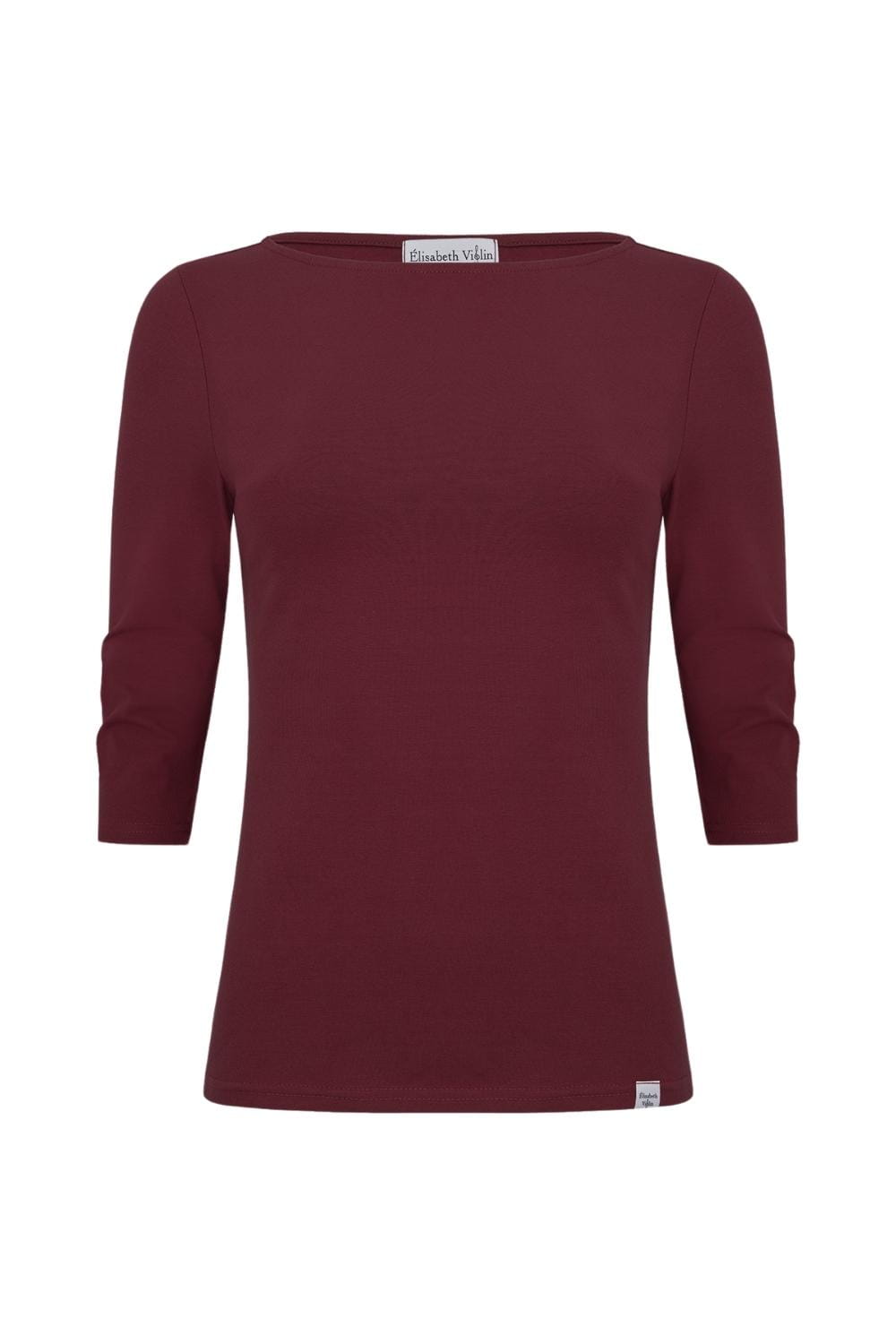 LÉA – Windsor Wine - WISKOZA – taliowana bluzka z dekoltem w łódkę i klasycznymi rękawami 3/4