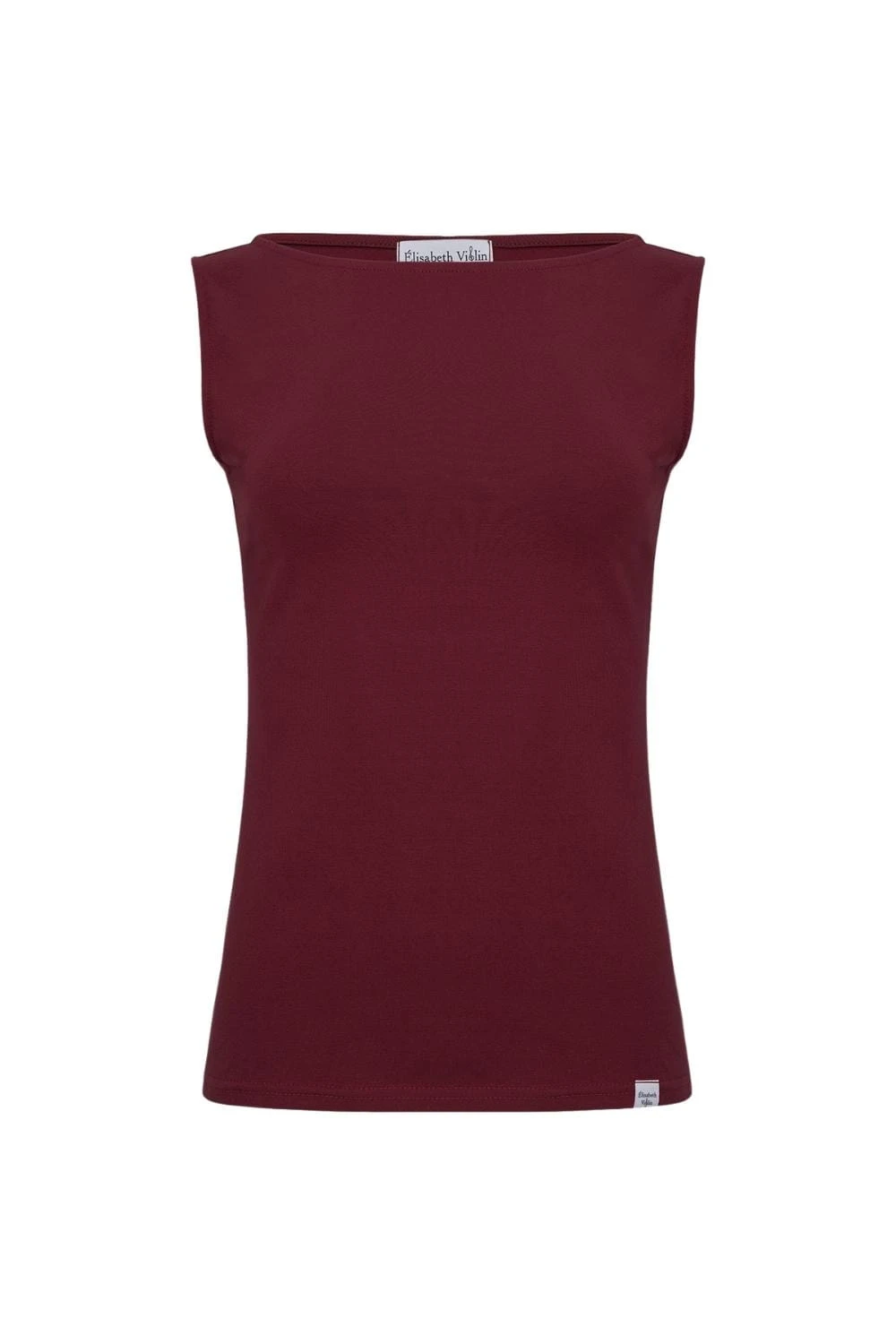 LÉA – Zinfandel - BAWEŁNA GŁADKA – taliowana bluzka z dekoltem w łódkę bez rękawków