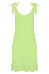 Dzianinowa sukienka przed kolano z wiązaniem na ramionach, uszyta z miękkiej, elastycznej dzianiny.