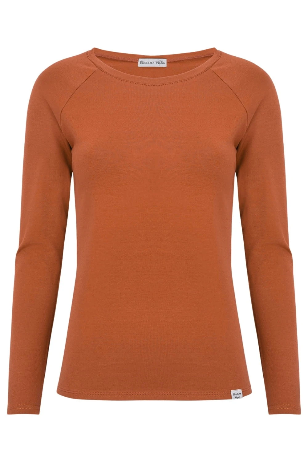 MAYA - Auburn - bambusowa taliowana bluzka z okrągłym dekoltem i długimi rękawami reglanowymi