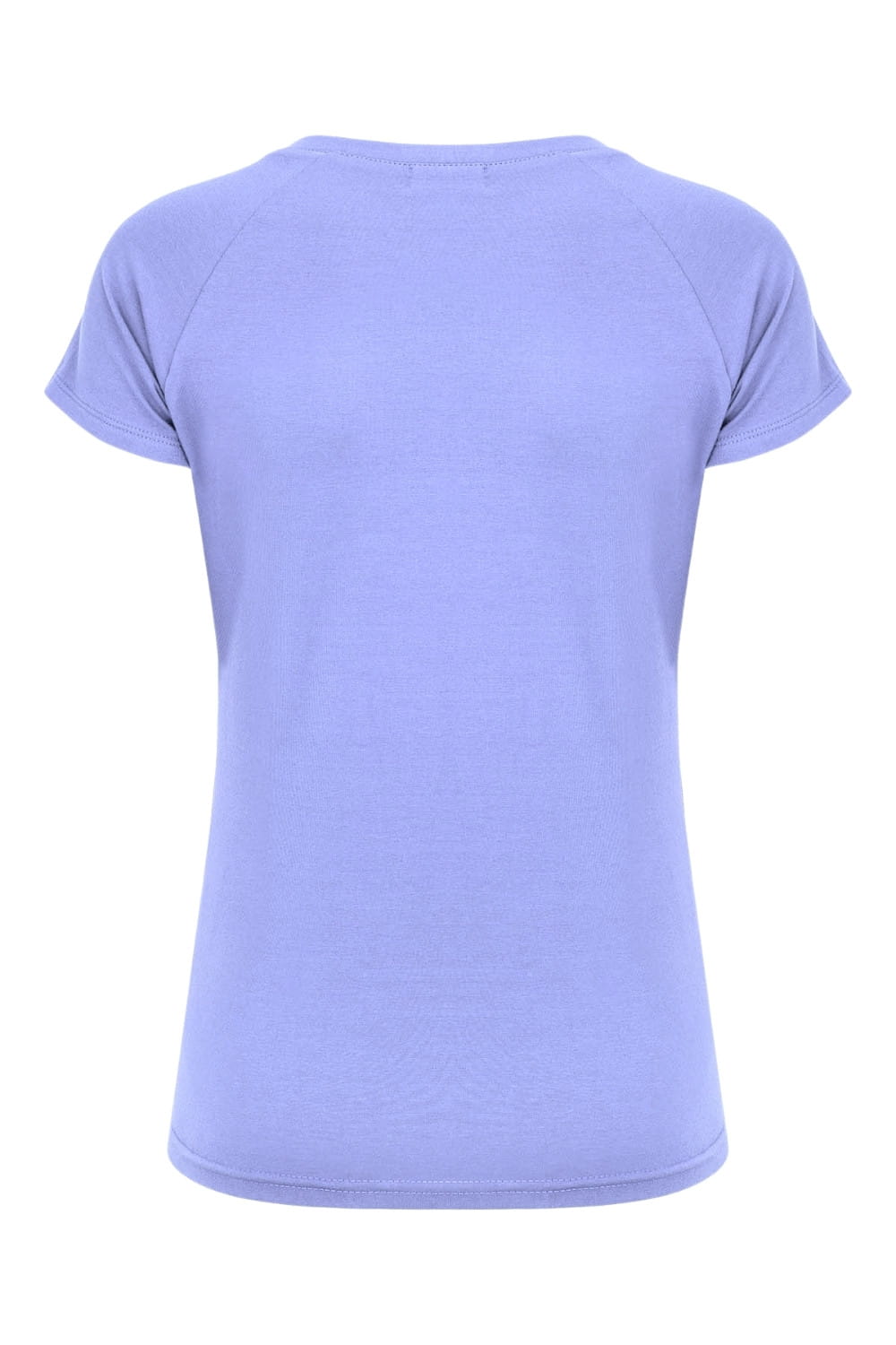 MAYA - Blue Bonnet - bambusowa taliowana bluzka z okrągłym dekoltem i reglanowymi krótkimi rękawami