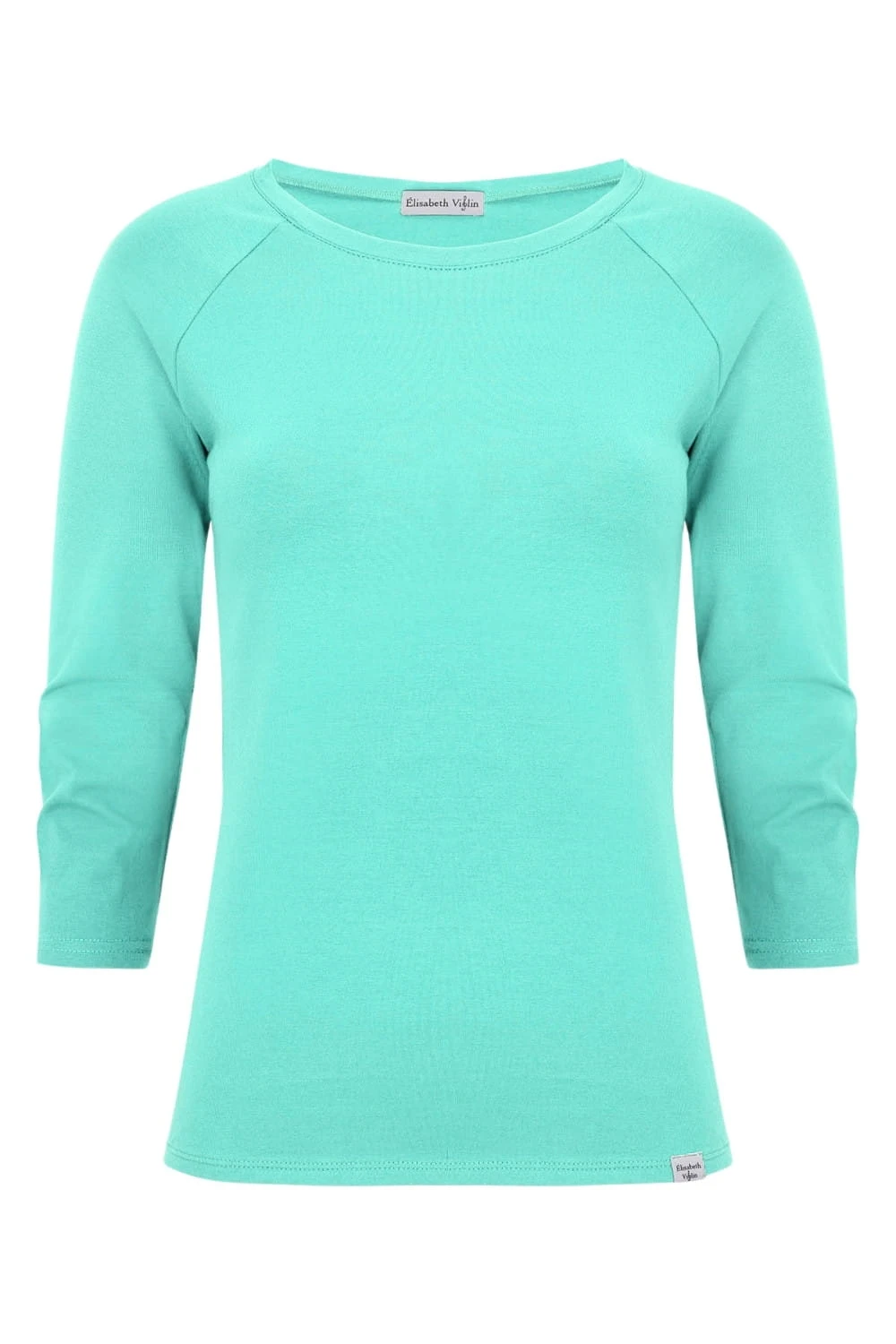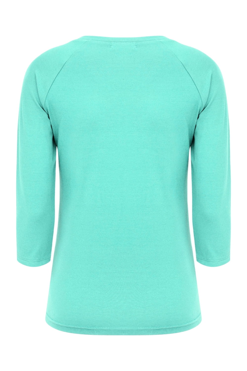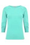 MAYA - Blue Turquoise - wiskozowa taliowana bluzka z okrągłym dekoltem i reglanowymi rękawami 3/4