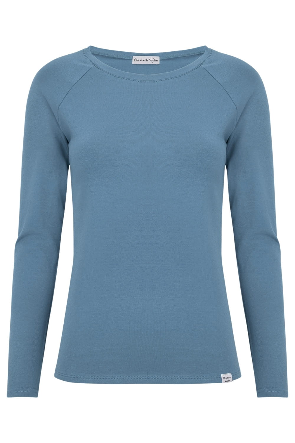 MAYA - Bluestone - bambusowa taliowana bluzka z okrągłym dekoltem i długimi rękawami reglanowymi
