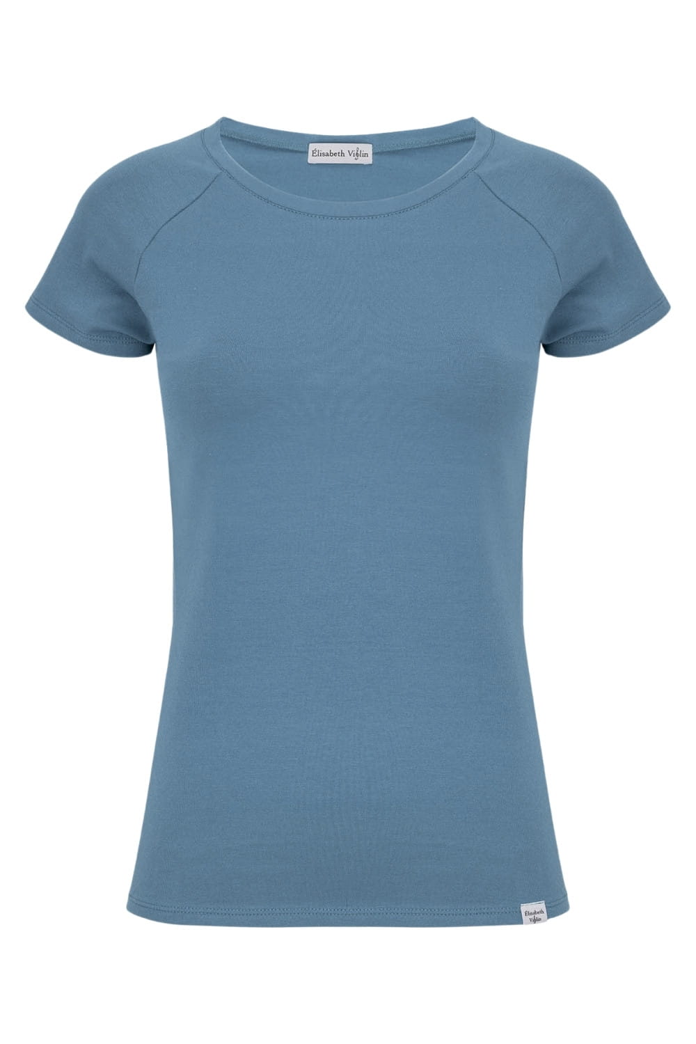 MAYA - Bluestone - bambusowa taliowana bluzka z okrągłym dekoltem i reglanowymi krótkimi rękawami