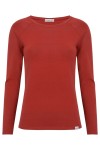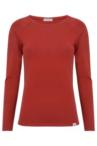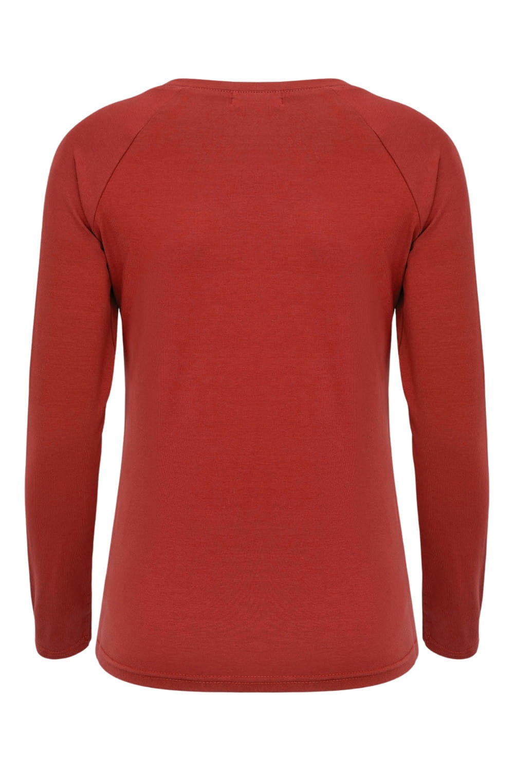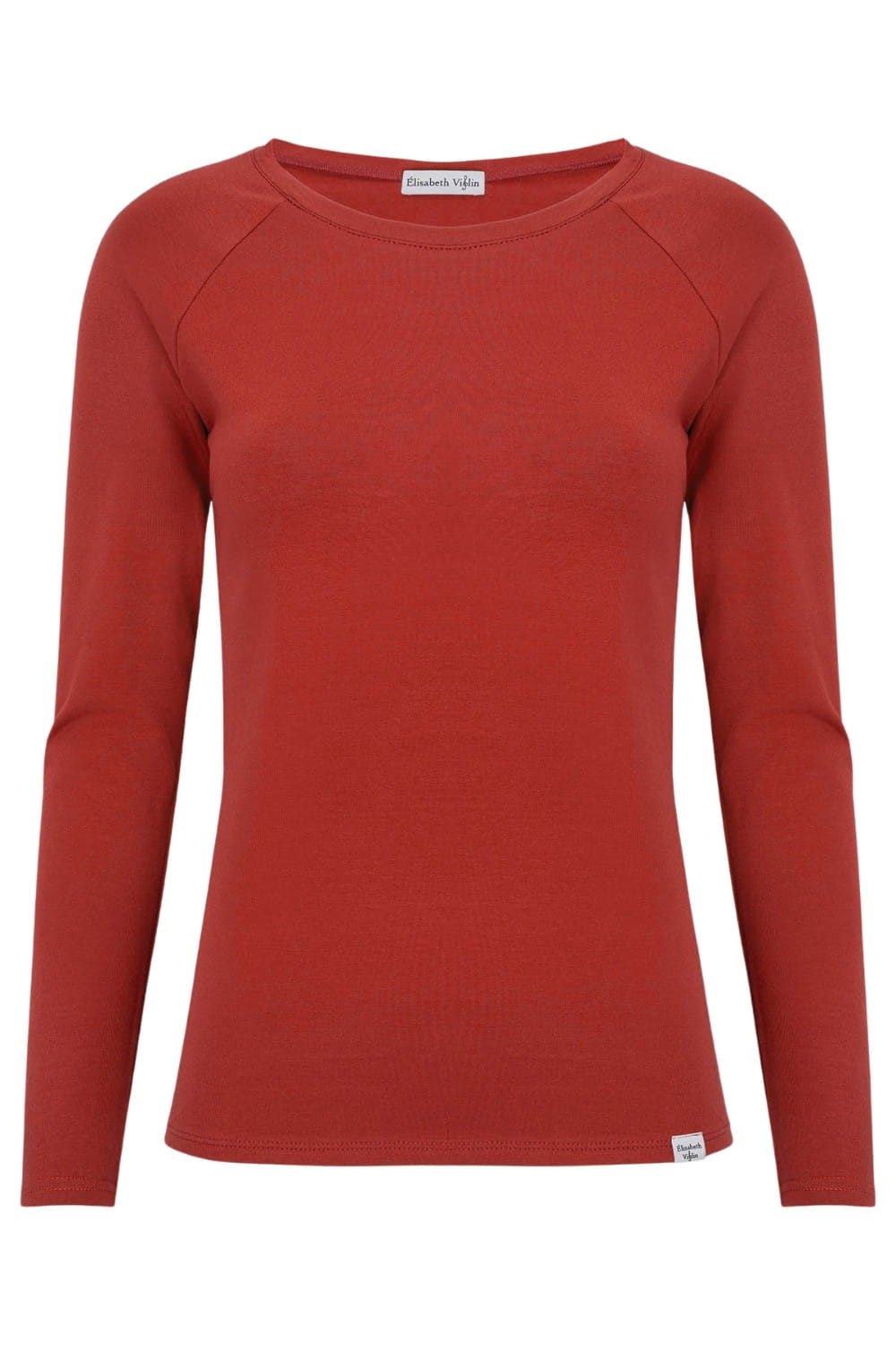 MAYA - Brick Red - bawełniana taliowana bluzka z okrągłym dekoltem i długimi rękawami reglanowymi