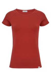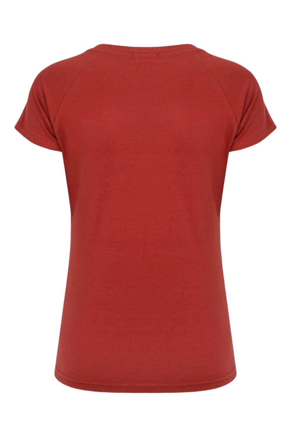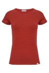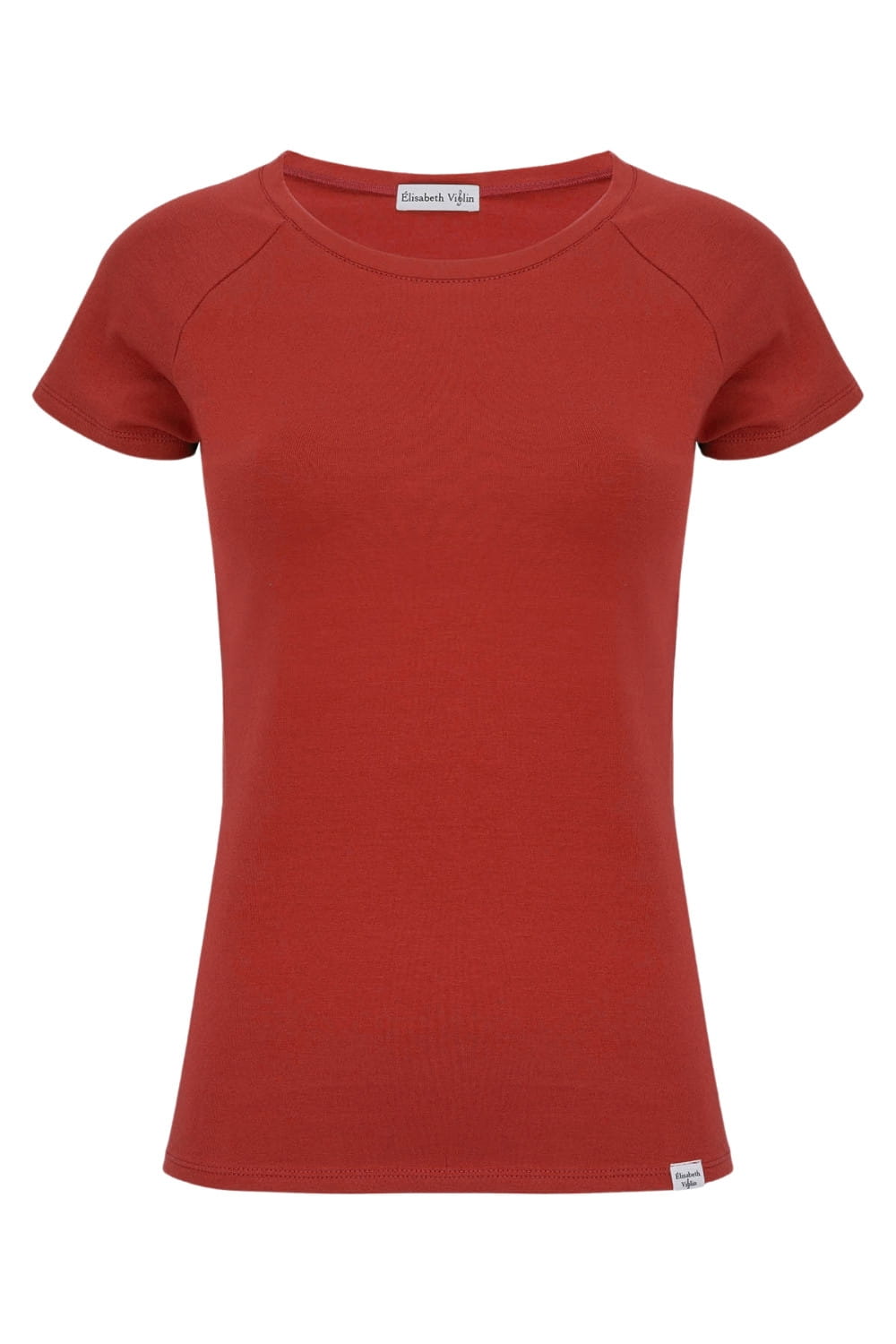 MAYA - Brick Red - bawełniana taliowana bluzka z okrągłym dekoltem i reglanowymi krótkimi rękawami