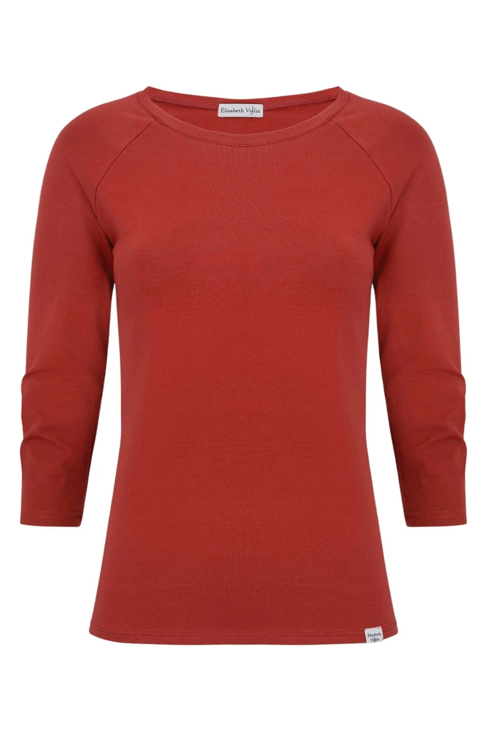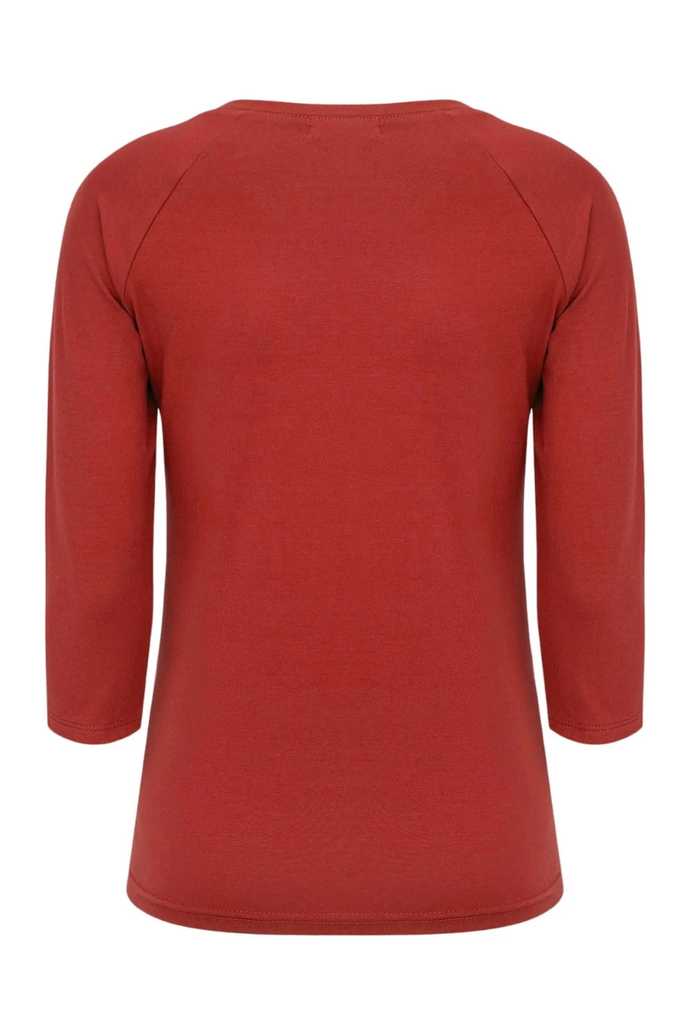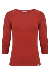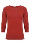 MAYA - Brick Red - bawełniana taliowana bluzka z okrągłym dekoltem i reglanowymi rękawami 3/4