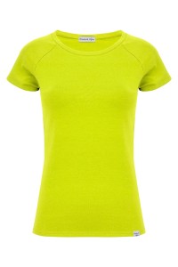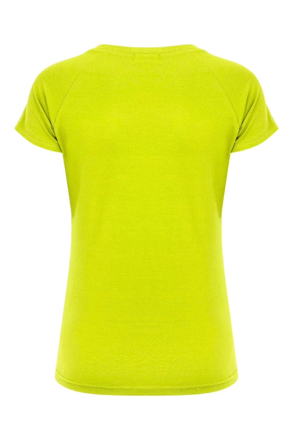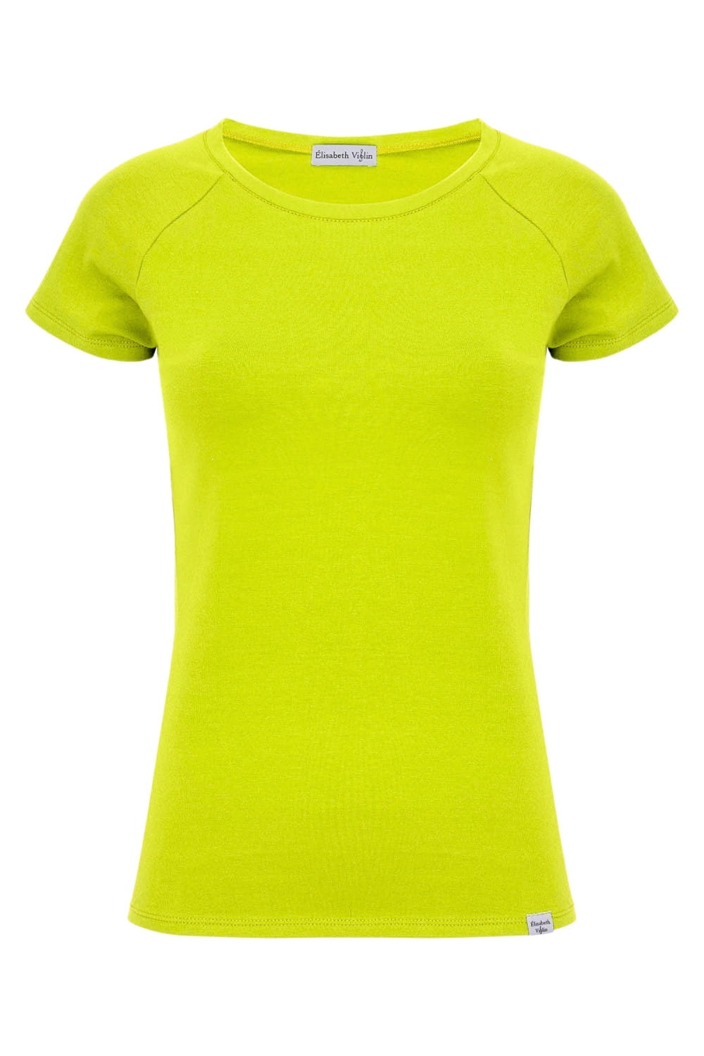 MAYA - Bright Chartreuse - wiskozowa taliowana bluzka z okrągłym dekoltem i reglanowymi krótkimi rękawami