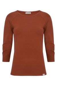 MAYA - Burnt Henna - wiskozowa taliowana bluzka z okrągłym dekoltem i reglanowymi rękawami 3/4
