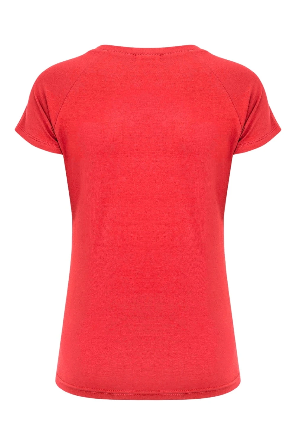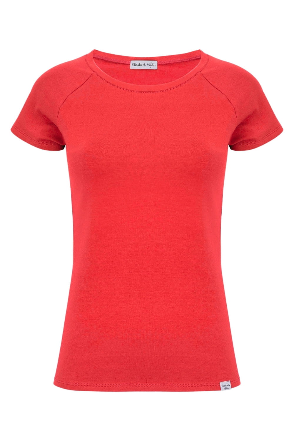MAYA - Cayenne - wiskozowa taliowana bluzka z okrągłym dekoltem i reglanowymi krótkimi rękawami