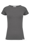 MAYA - Charcoal Gray - wiskozowa taliowana bluzka z okrągłym dekoltem i reglanowymi krótkimi rękawami