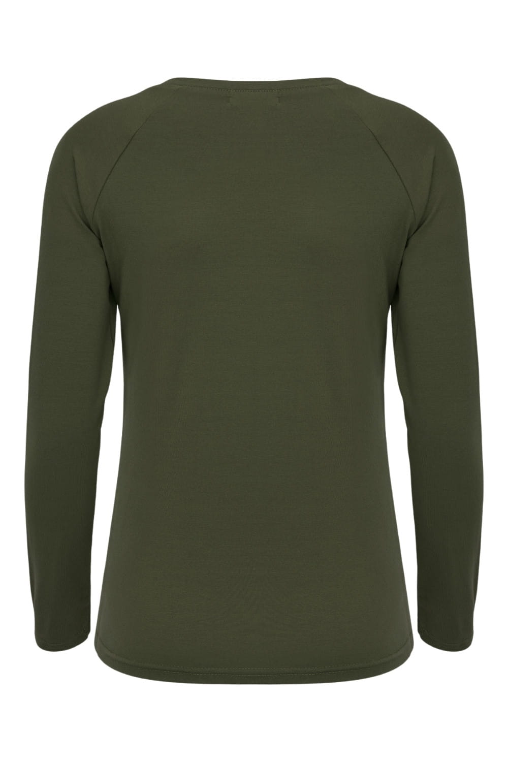 MAYA - Deep Depths - wiskozowa taliowana bluzka z okrągłym dekoltem i długimi rękawami reglanowymi