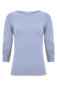 MAYA - Faded Denim - wiskozowa taliowana bluzka z okrągłym dekoltem i reglanowymi rękawami 3/4