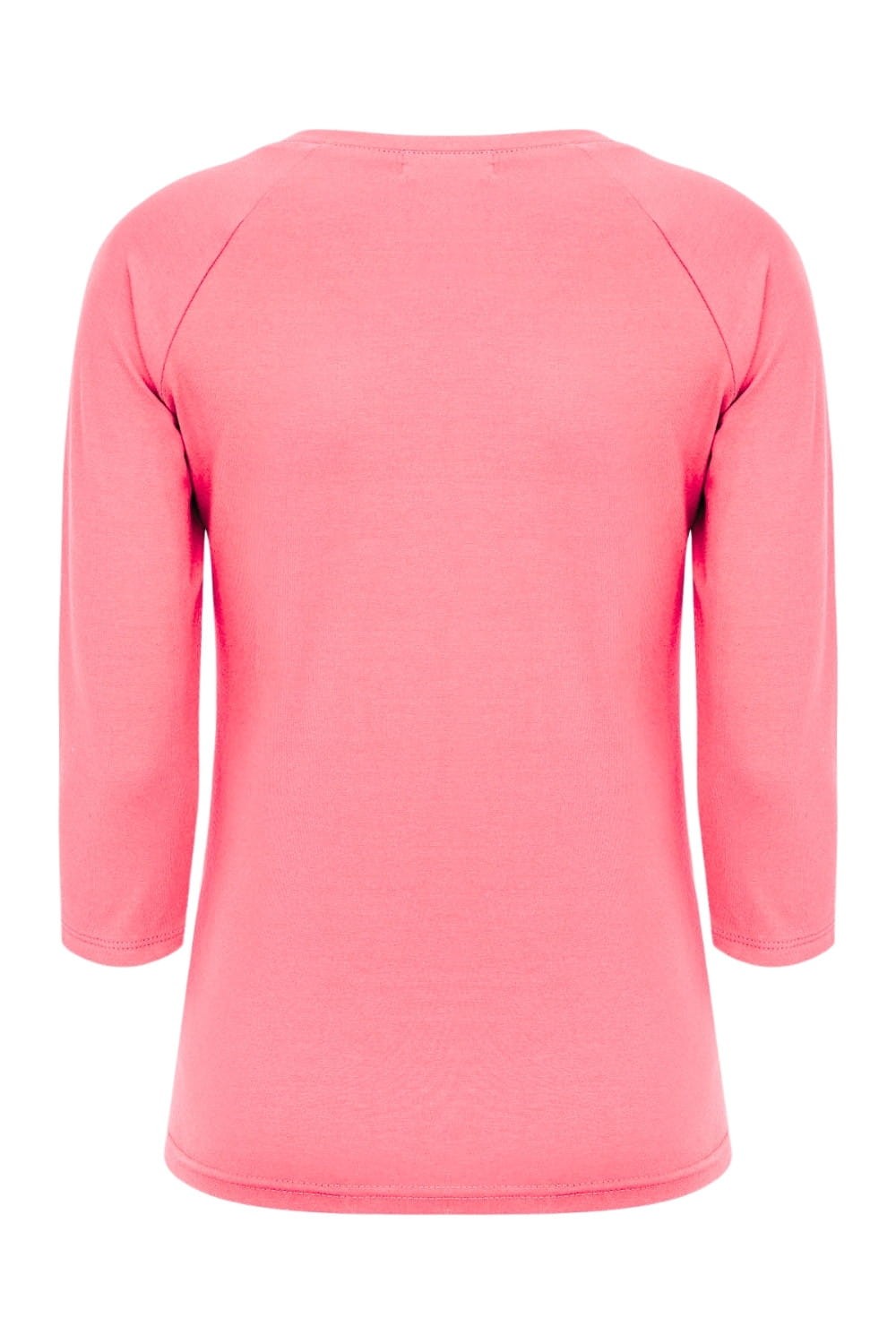 MAYA - Geranium Pink - bawełniana taliowana bluzka z okrągłym dekoltem i reglanowymi rękawami 3/4