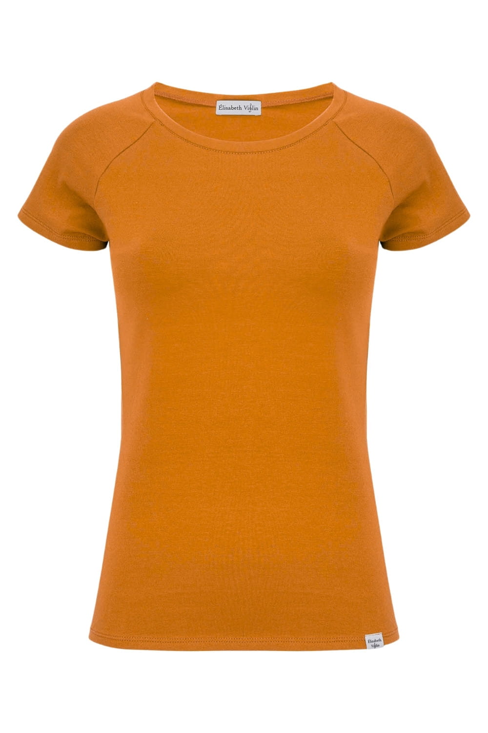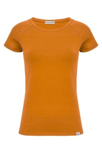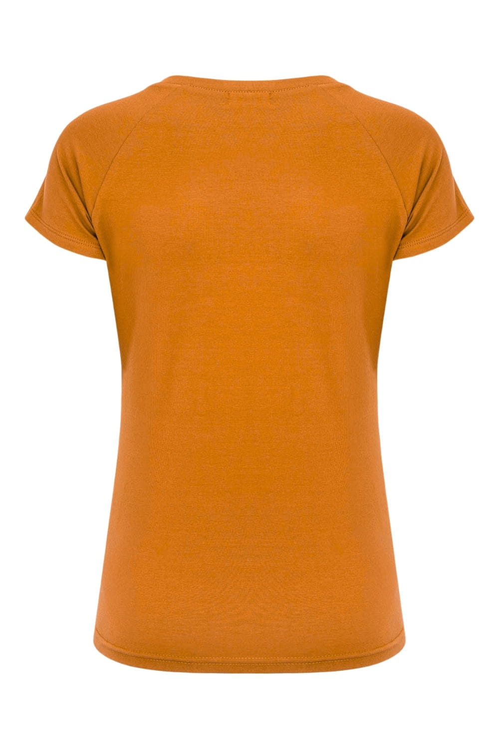 MAYA - Golden Ochre - bambusowa taliowana bluzka z okrągłym dekoltem i reglanowymi krótkimi rękawami