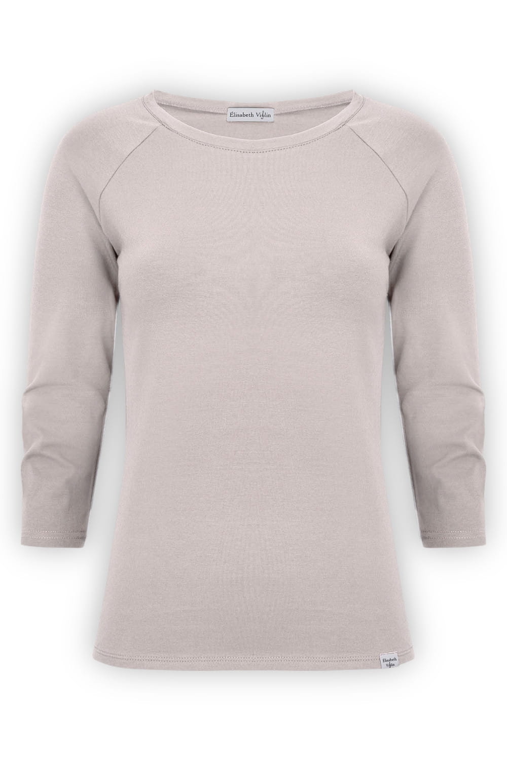 MAYA - Gray Morn - bawełniana taliowana bluzka z okrągłym dekoltem i reglanowymi rękawami 3/4
