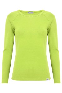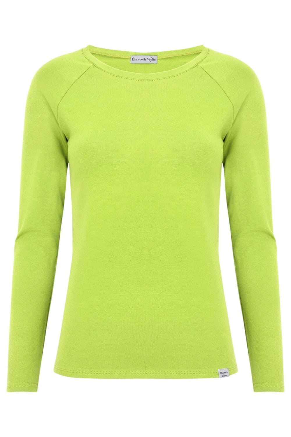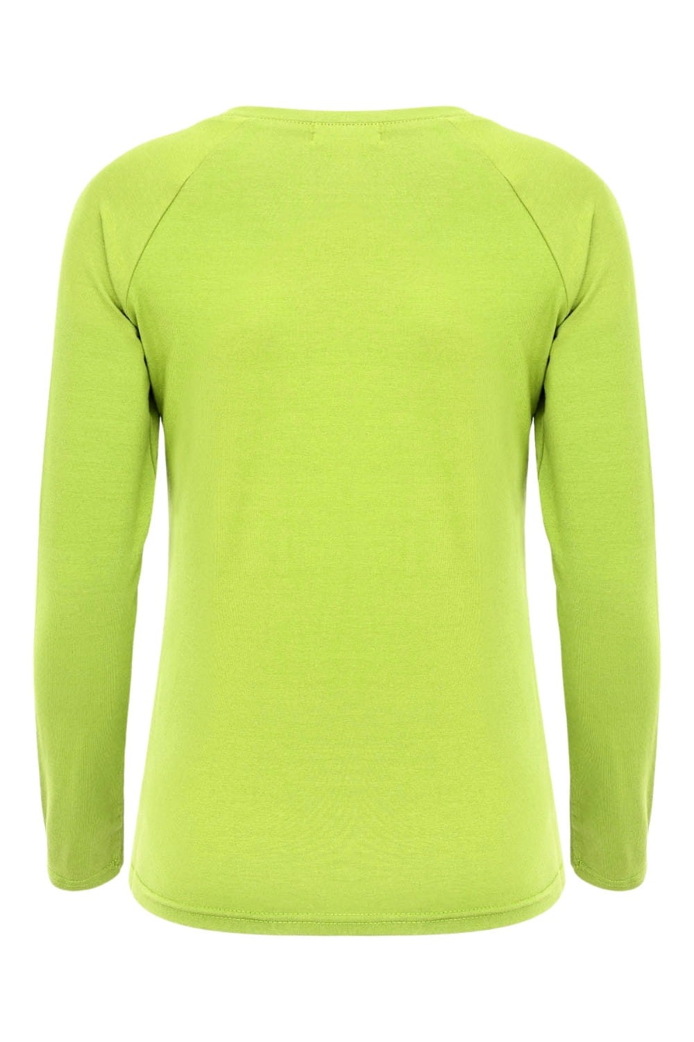 MAYA - Green Glow - bawełniana taliowana bluzka z okrągłym dekoltem i długimi rękawami reglanowymi