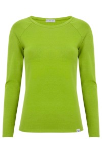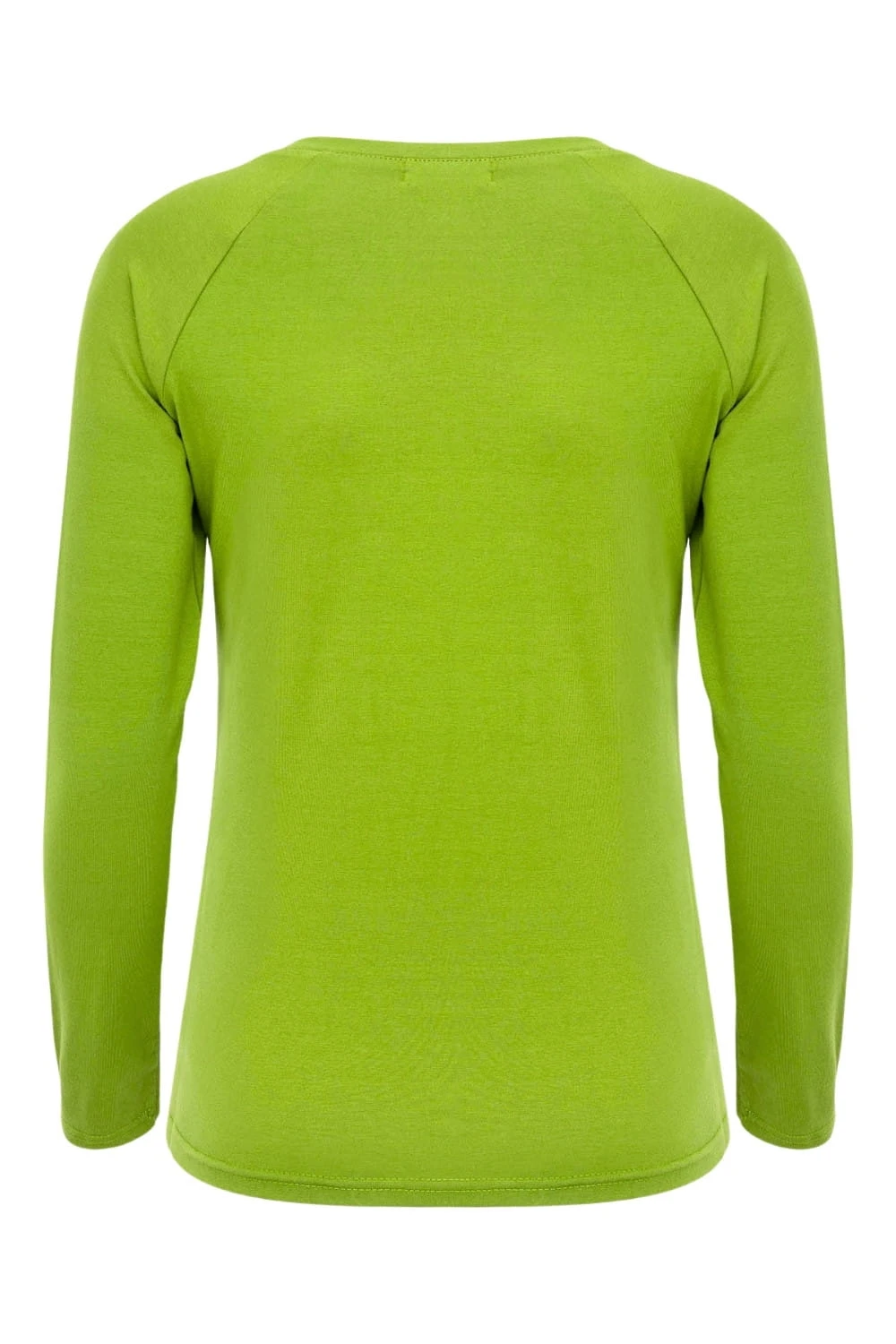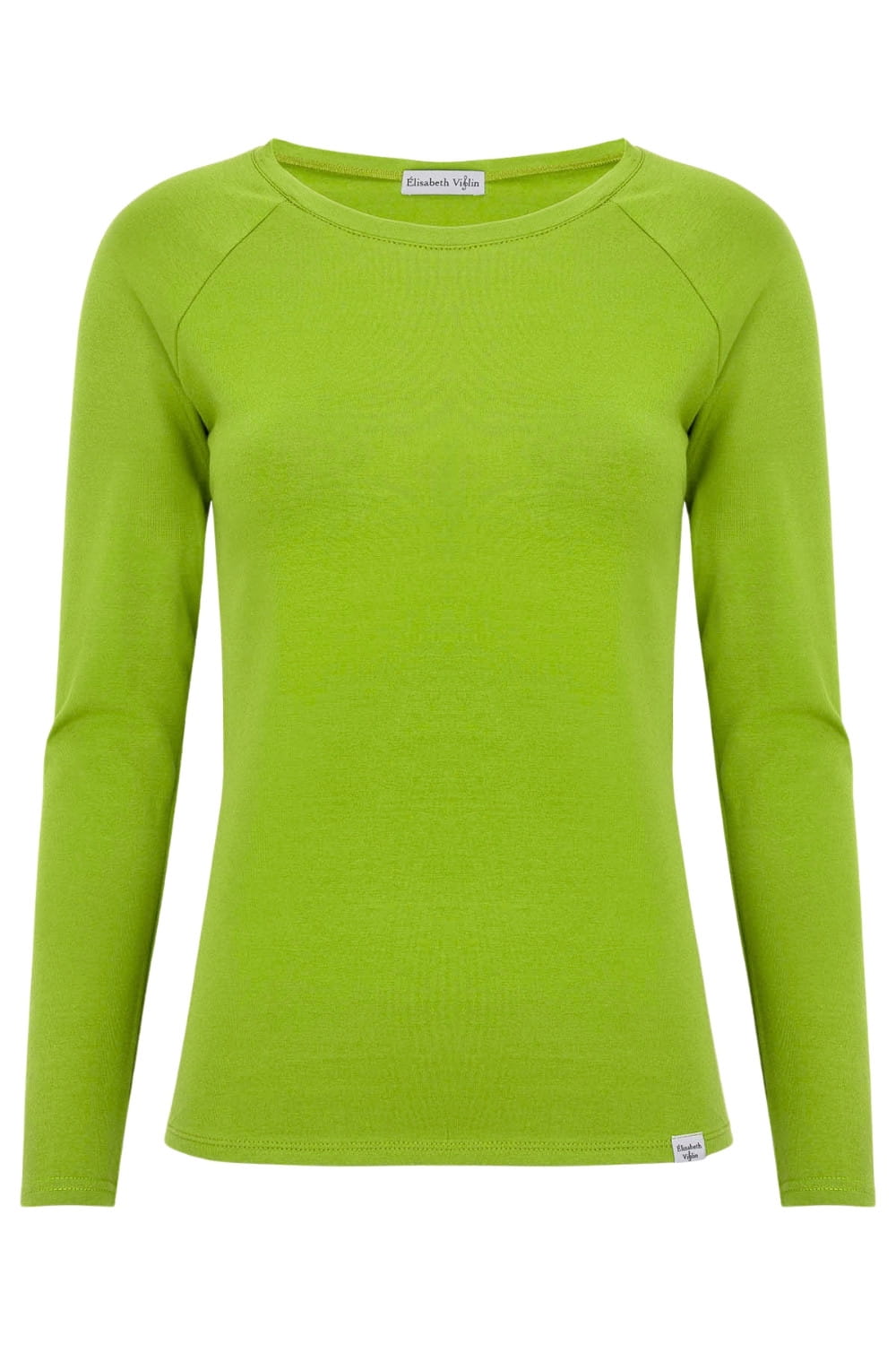 MAYA - Greenery - bawełniana taliowana bluzka z okrągłym dekoltem i długimi rękawami reglanowymi