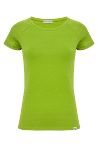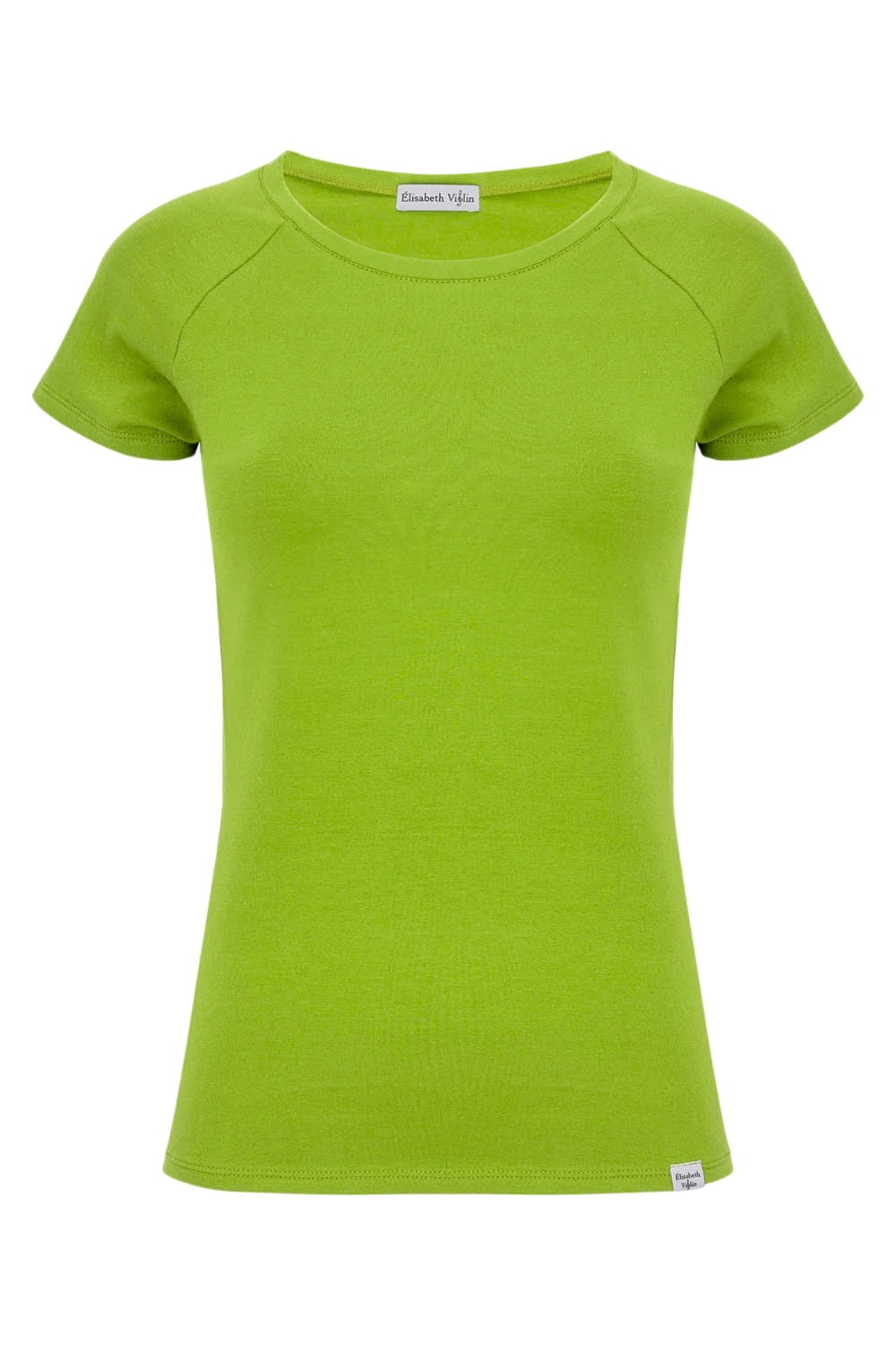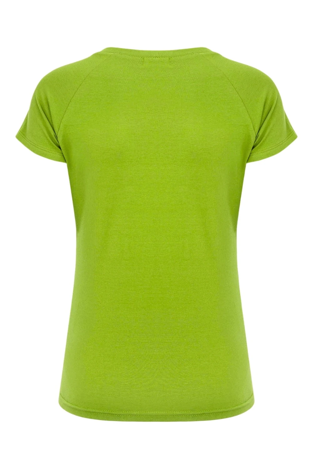MAYA - Greenery - bawełniana taliowana bluzka z okrągłym dekoltem i reglanowymi krótkimi rękawami