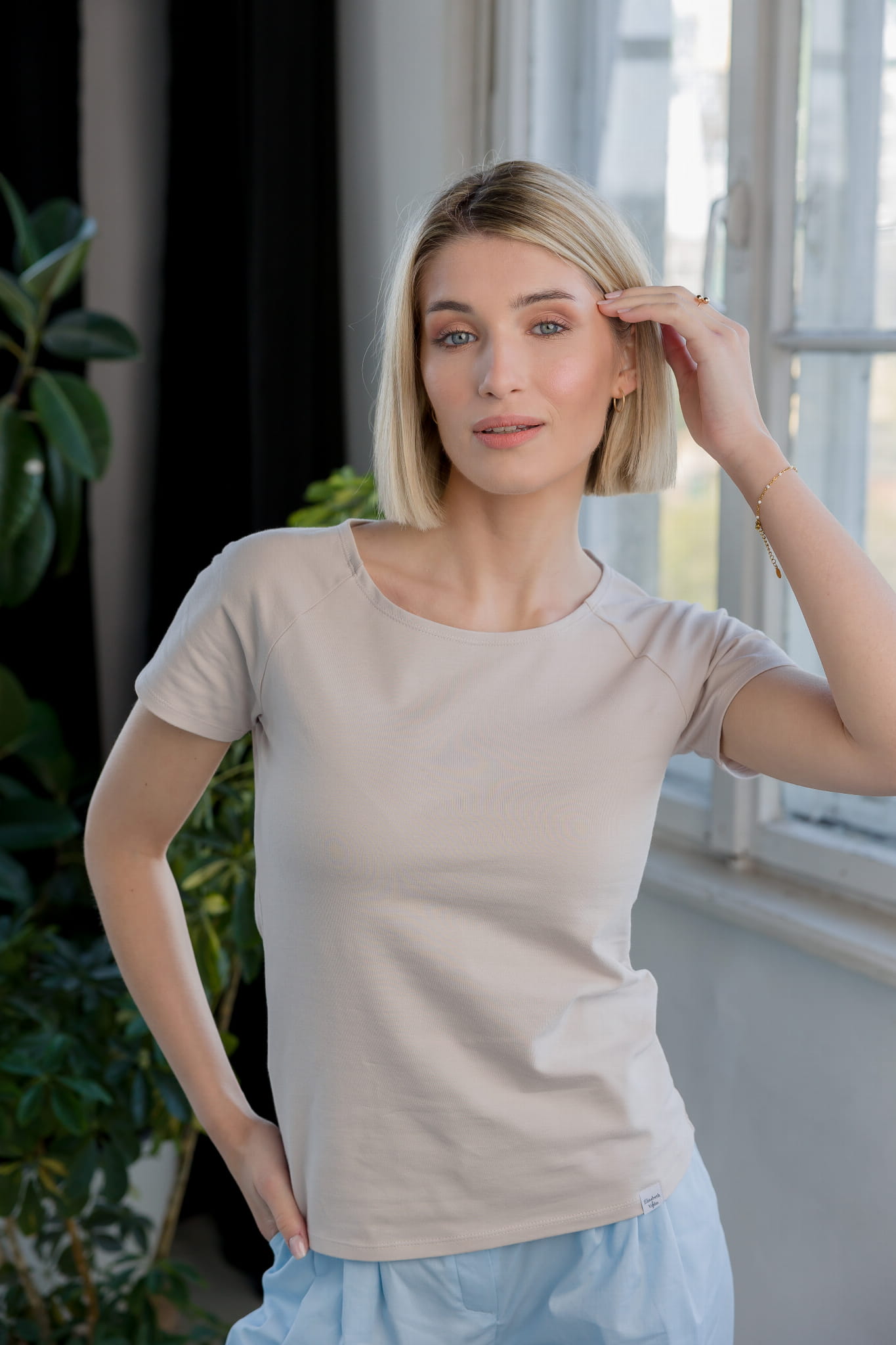Minimalistyczna bluzka z miękkiej dzianiny bawełnianej o delikatnie taliowanym kroju i rękawach raglanowych o długości 3/4. Model Maya doskonale sprawdzi się zarówno w codziennych stylizacjach, jak i w bardziej sportowym wydaniu, zapewniając wygodę i subtelną elegancję każdego dnia.