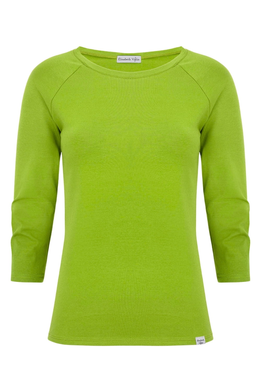 MAYA - Greenery - bawełniana taliowana bluzka z okrągłym dekoltem i reglanowymi rękawami 3/4
