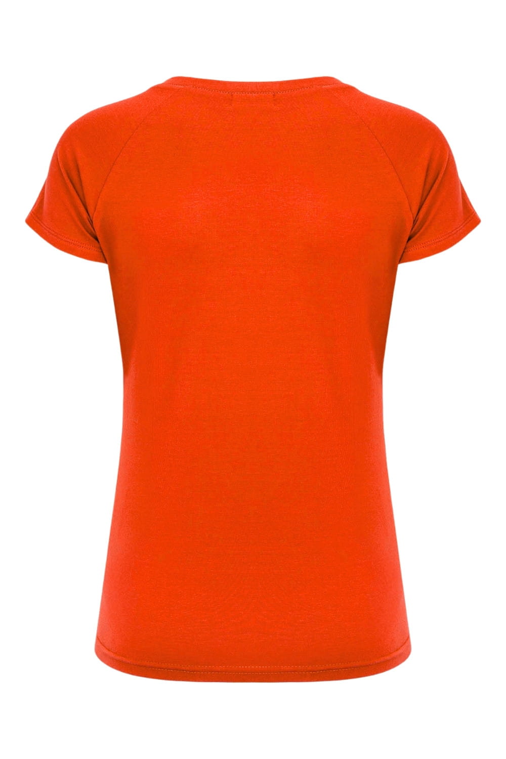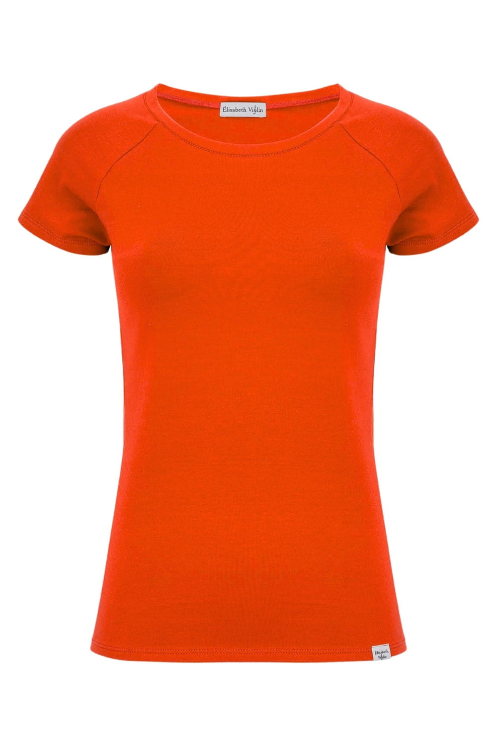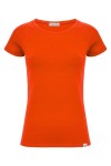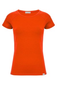 MAYA - Mandarin Red - bawełniana taliowana bluzka z okrągłym dekoltem i reglanowymi krótkimi rękawami