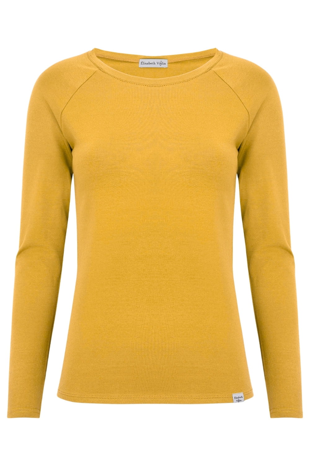 MAYA - Mineral Yellow - bawełniana taliowana bluzka z okrągłym dekoltem i długimi rękawami reglanowymi