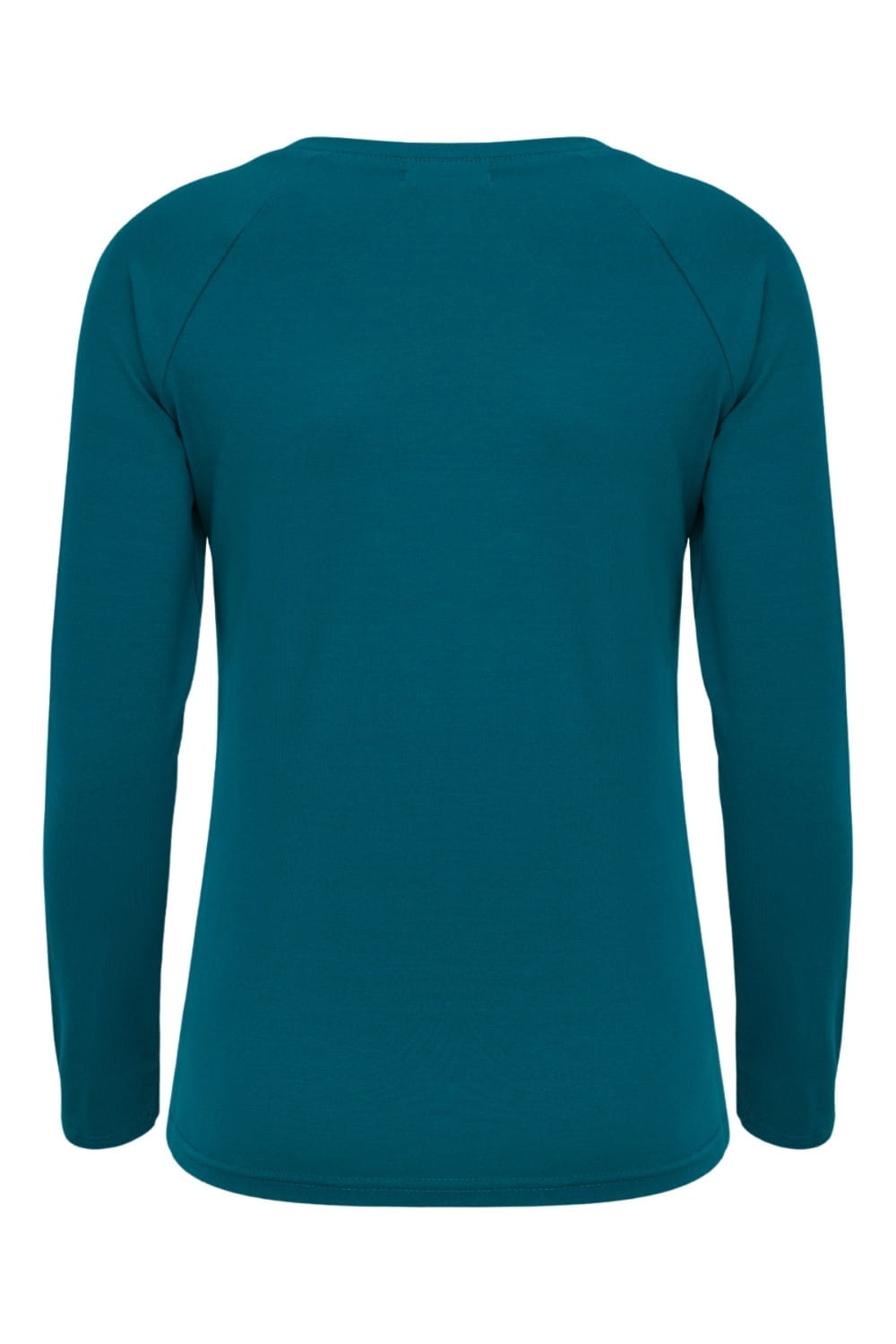 MAYA - Moroccan Blue - wiskozowa taliowana bluzka z okrągłym dekoltem i długimi rękawami reglanowymi