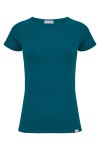 MAYA - Moroccan Blue - wiskozowa taliowana bluzka z okrągłym dekoltem i reglanowymi krótkimi rękawami
