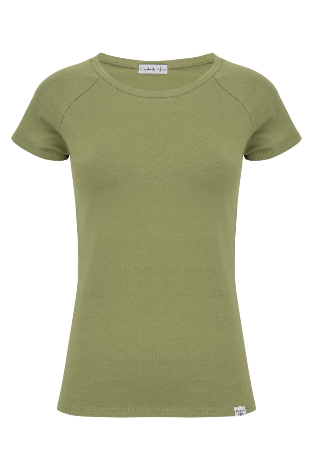 MAYA - Oil Green - bambusowa taliowana bluzka z okrągłym dekoltem i reglanowymi krótkimi rękawami