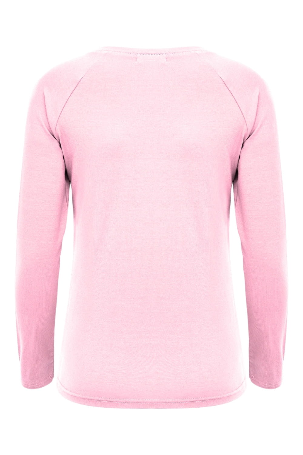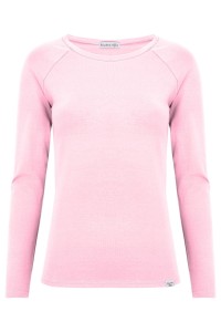 MAYA - Parfait Pink - bawełniana taliowana bluzka z okrągłym dekoltem i długimi rękawami reglanowymi