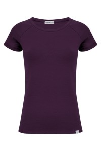 MAYA - Plum Purple - bambusowa taliowana bluzka z okrągłym dekoltem i reglanowymi krótkimi rękawami